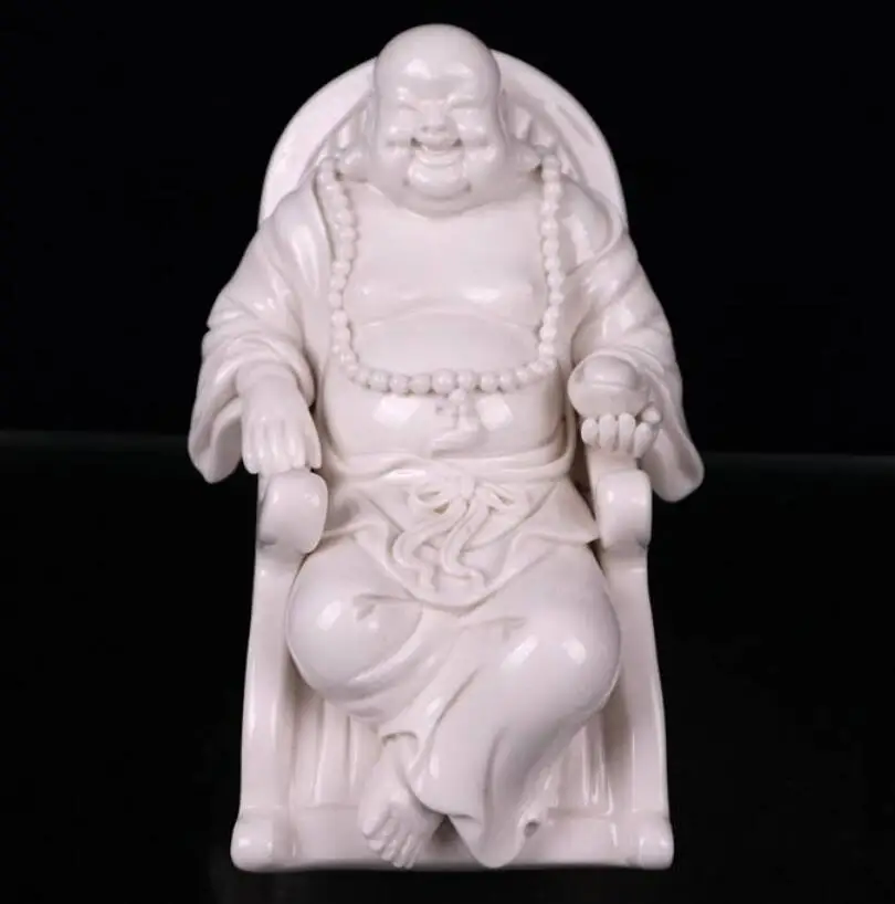 China seiko White glaze ceramic sit maitreya Buddha crafts statue