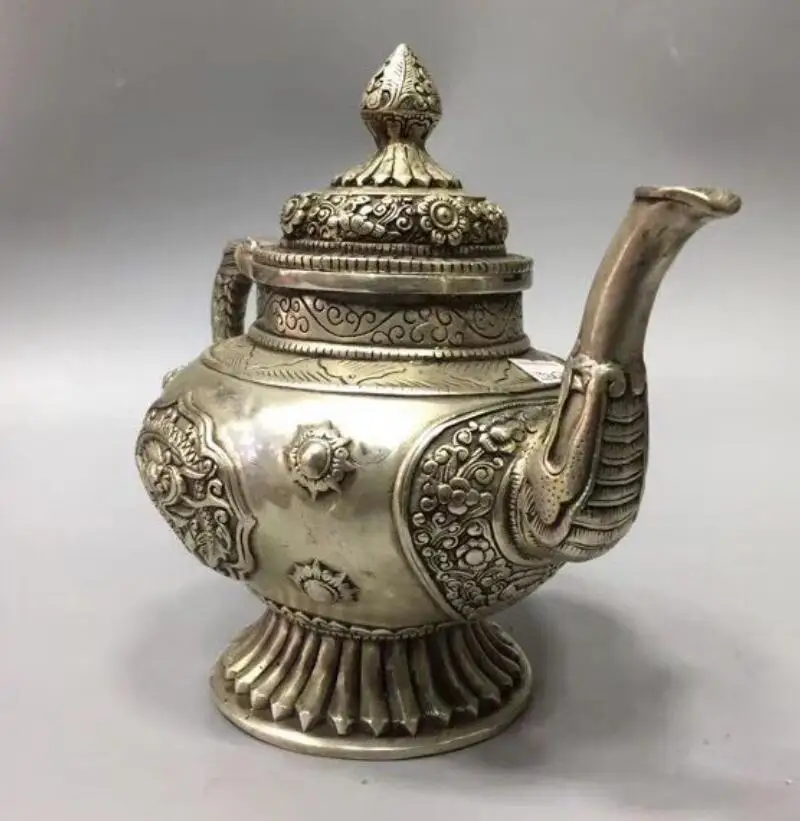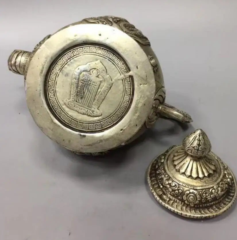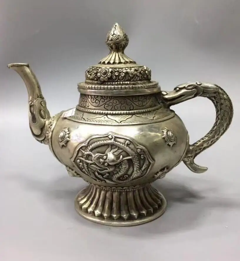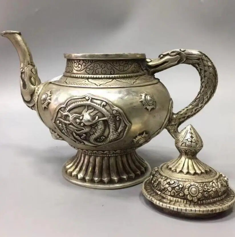 China White copper Dragon Motif Flagon teapot crafts statue