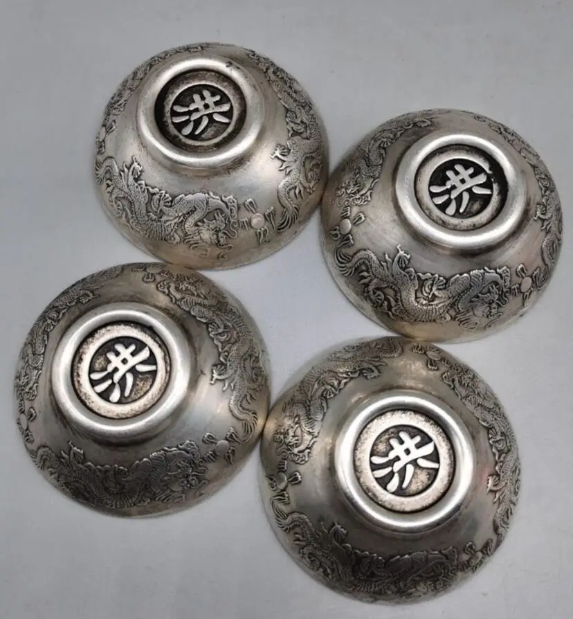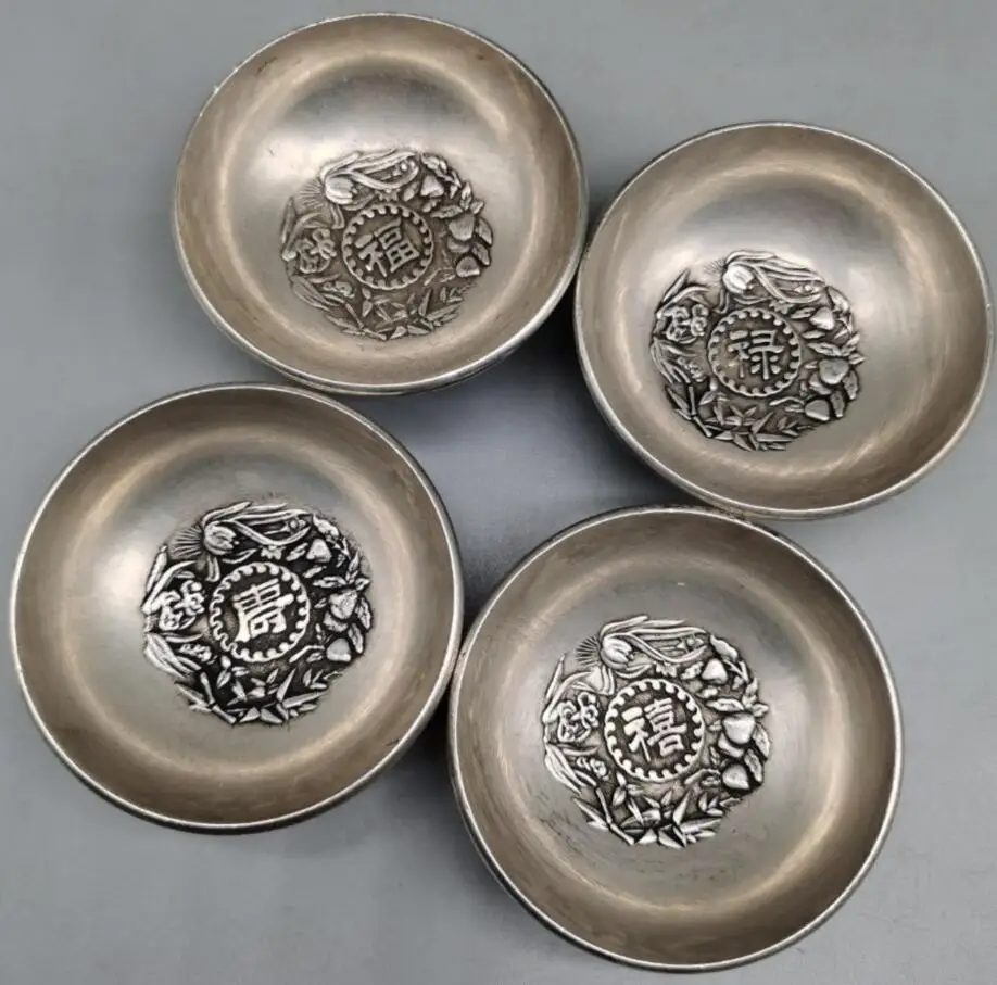 China White copper Fu Lu Shou Xi bowl crafts statue A set