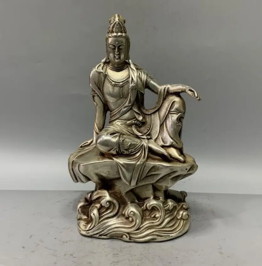 China White copper Goddess of mercy bodhisattva Buddha crafts statue