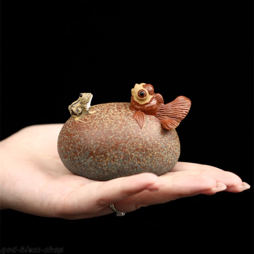 China Yixing Zisha Tea Pet Clay Water Squirting Tea Play Frog Fish Home Ornament Size: small (L5.5cm*W8cm*H5.7cm)