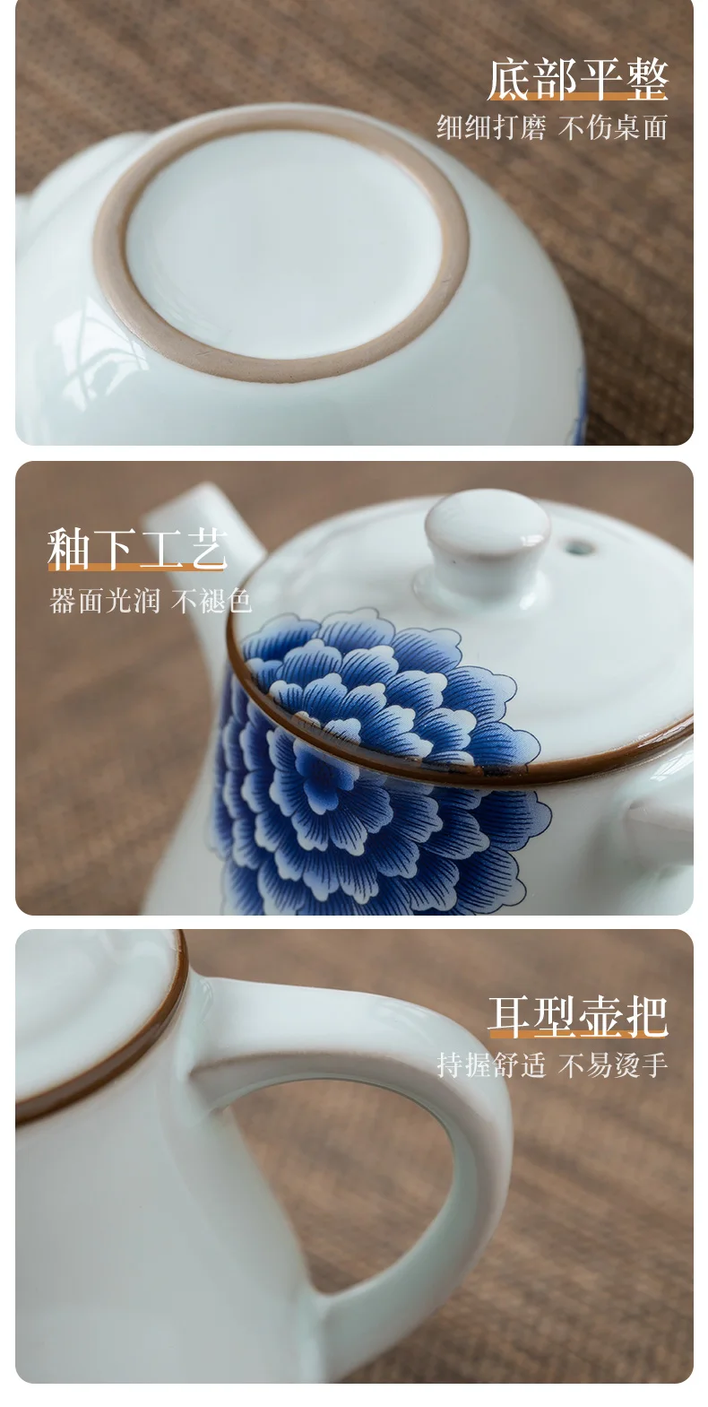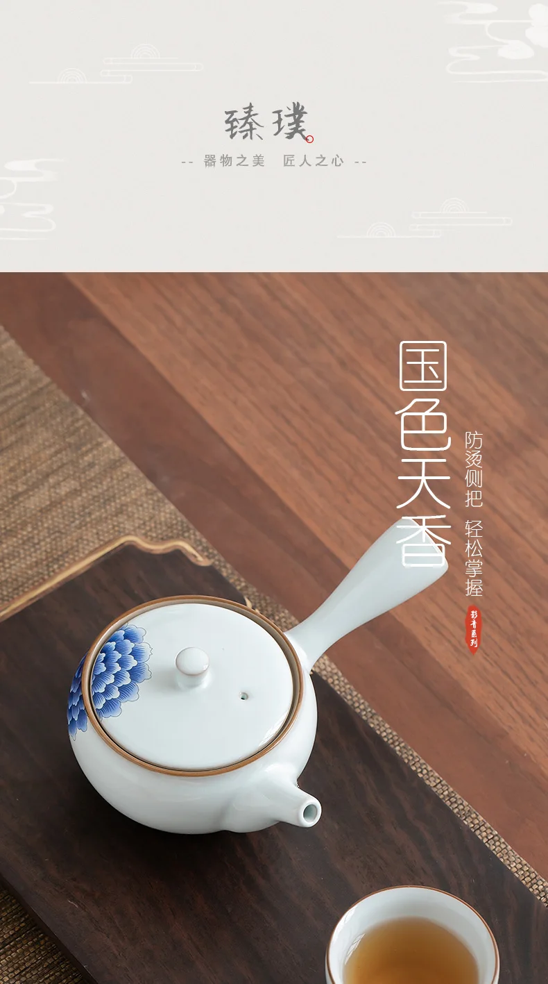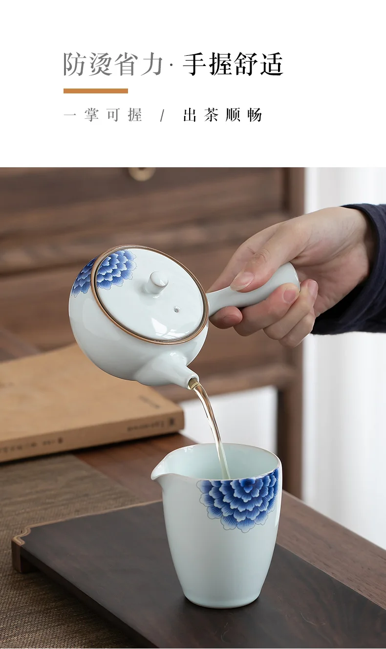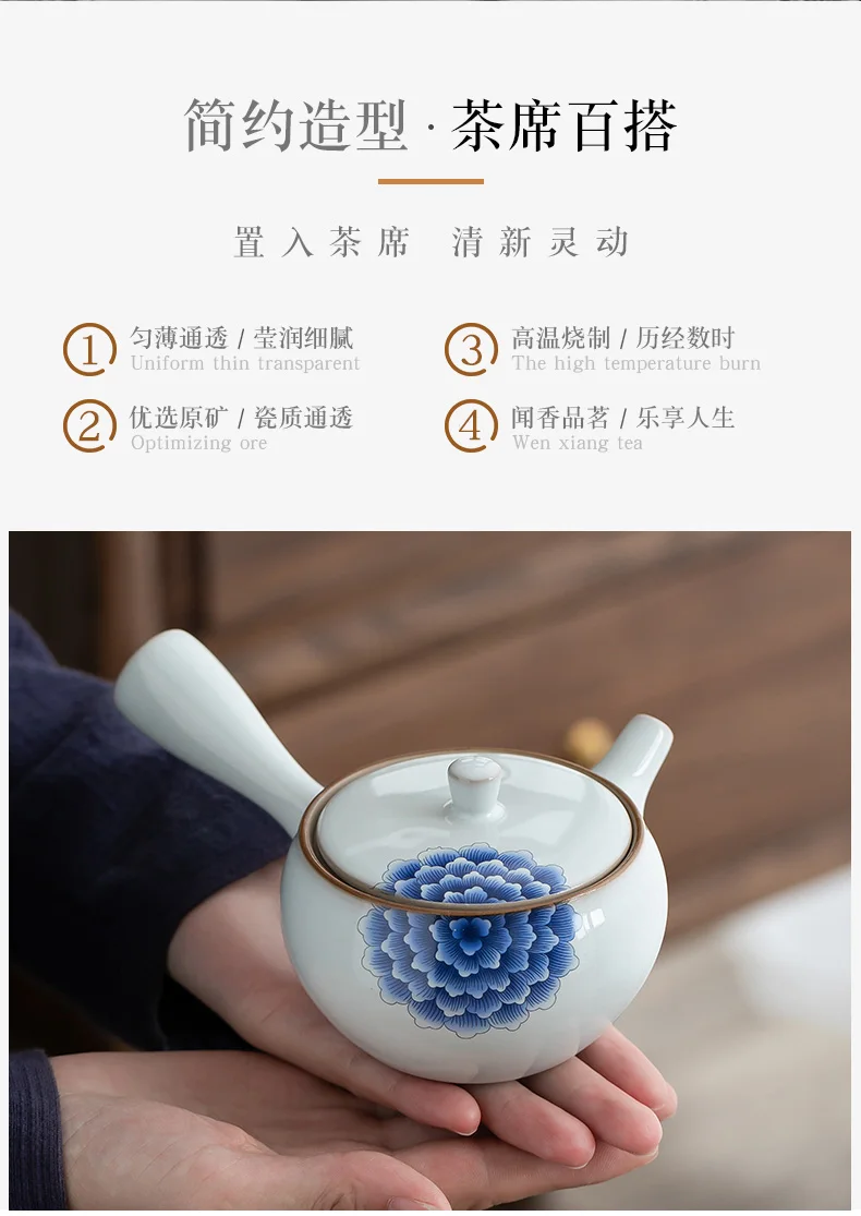 Chinese blue and white retro side handle teapot small single tea pot ceramic Japanese kungfu tea set one person mini teaware