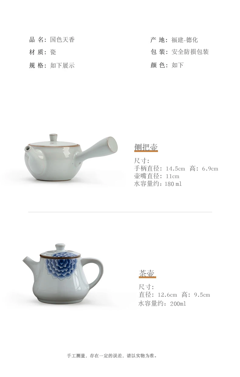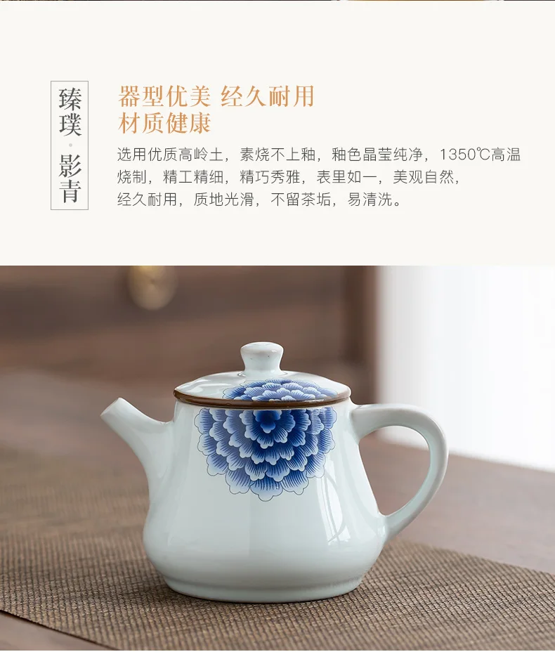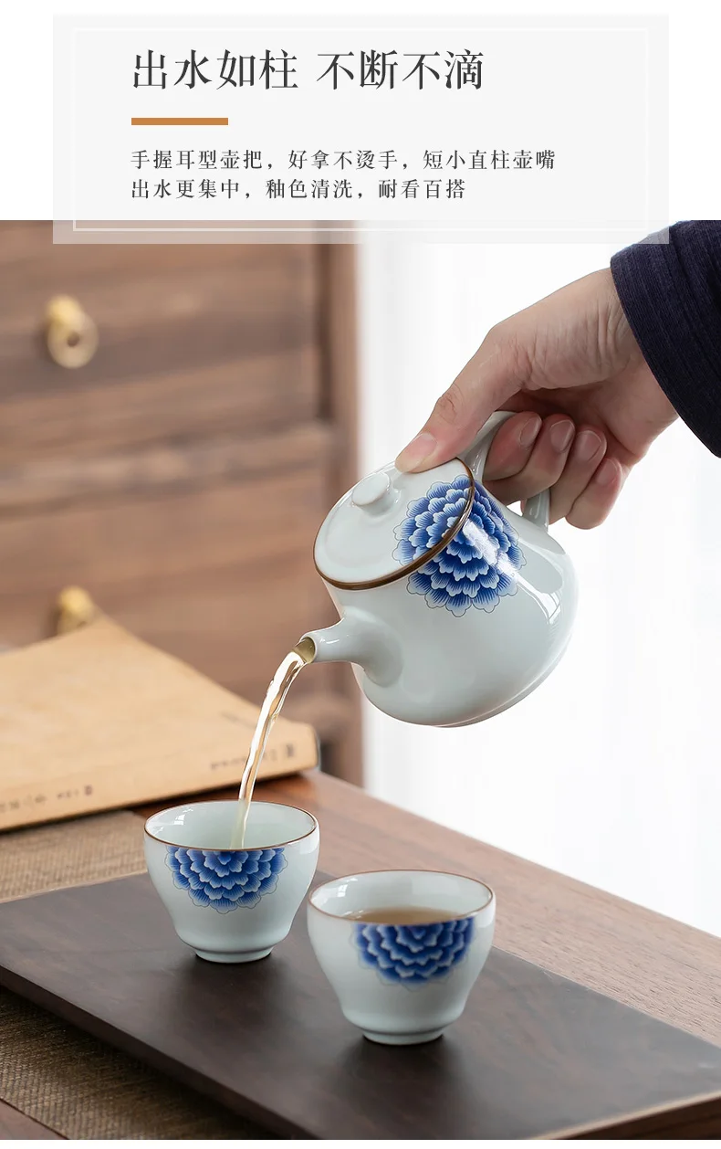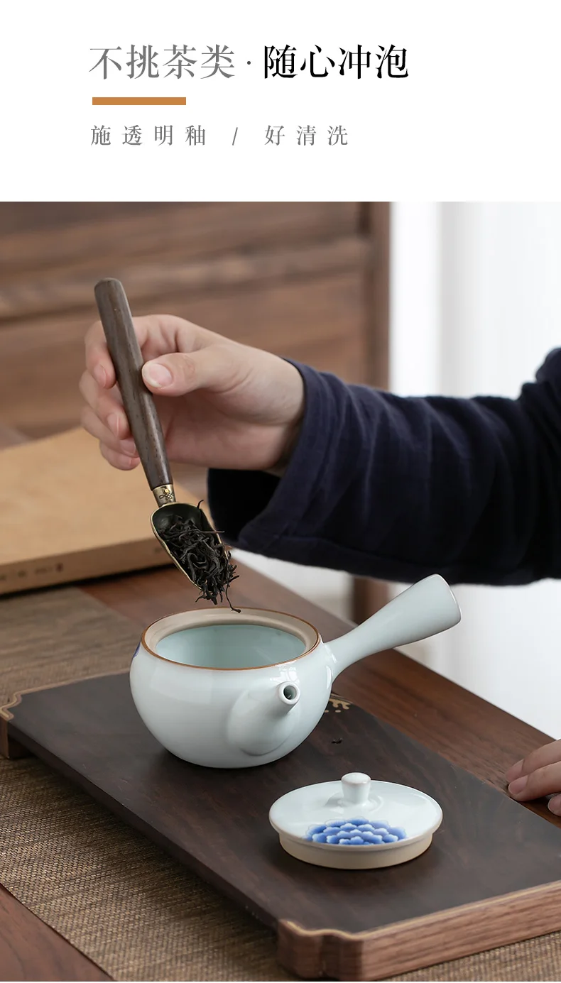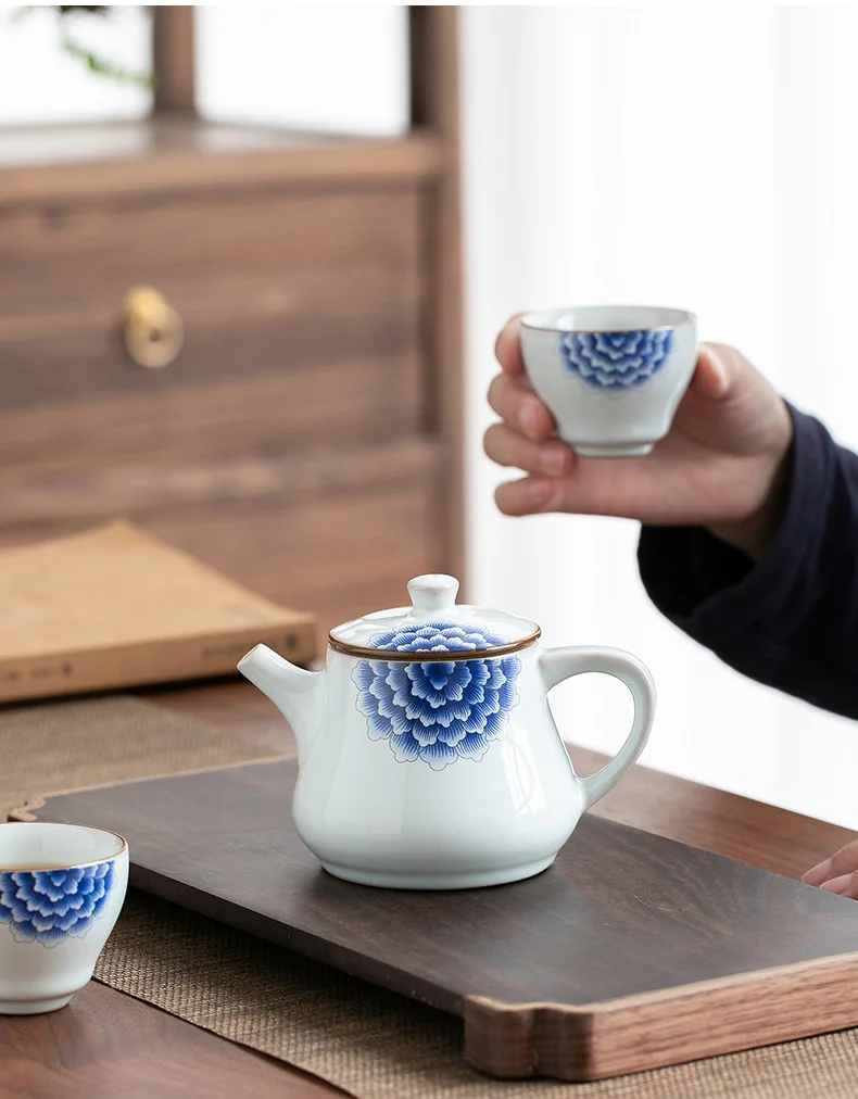 Chinese blue and white retro side handle teapot small single tea pot ceramic Japanese kungfu tea set one person mini teaware