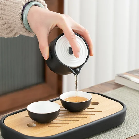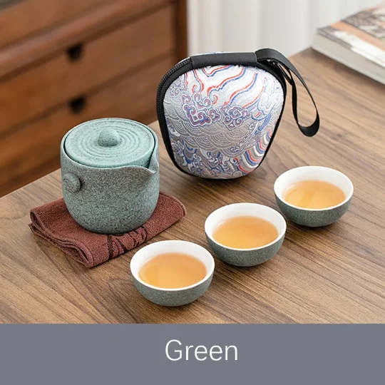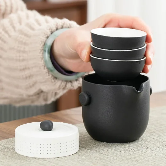 Chinese Ceramic Teapot with 3 Cups Portable Travel tea sets
