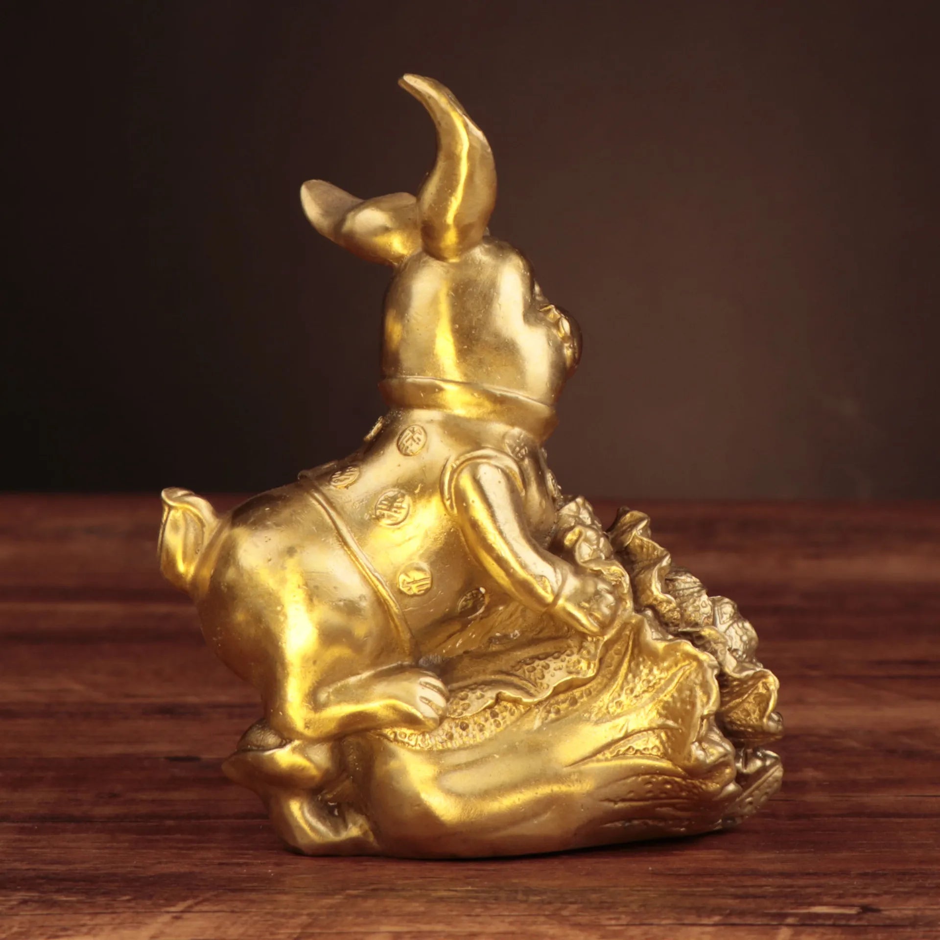 Chinese Collection Carving Brass Wealth FU Rabbit Crafts Decoration Statue A Pair