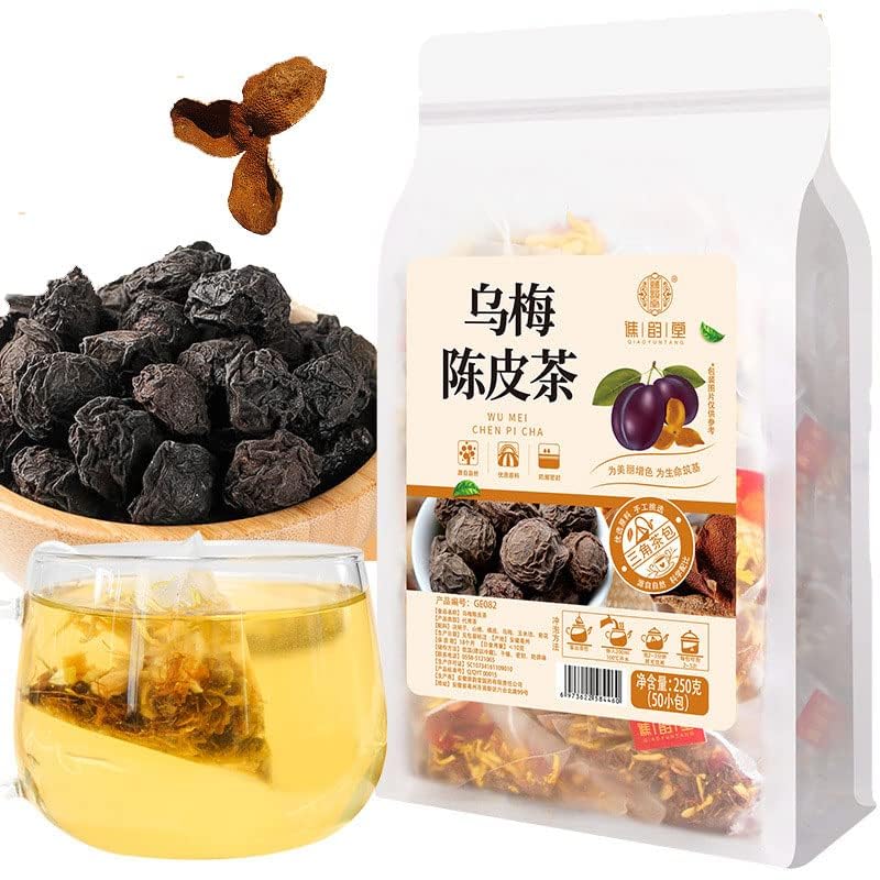 Chinese Dark Plum Matured Mandarin Peel Tea Combined Herbal Tea Bag 250g