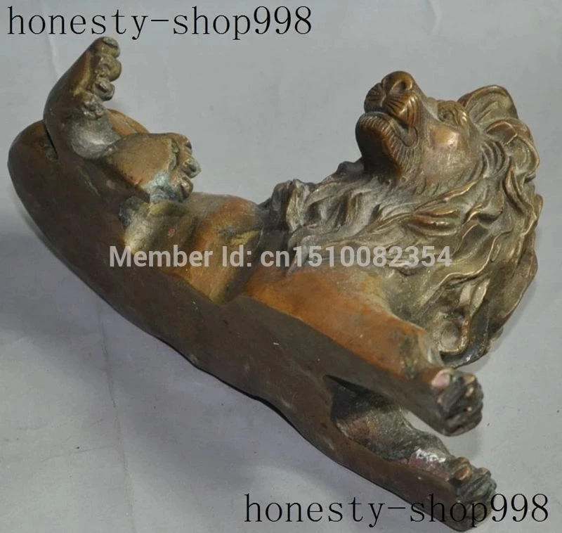 Chinese folk fengshui bronze copper evil foo fu dog lion animal beast statue