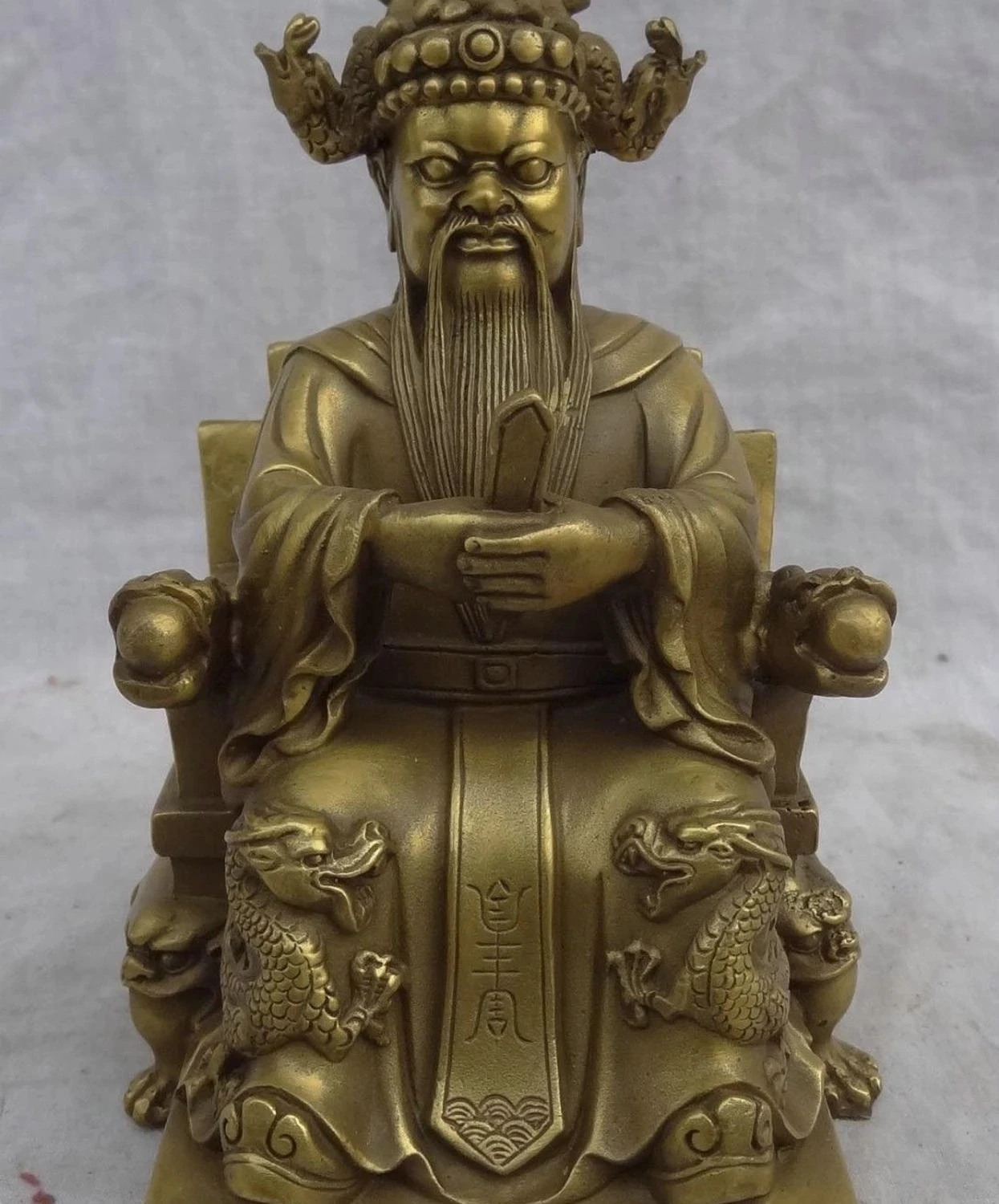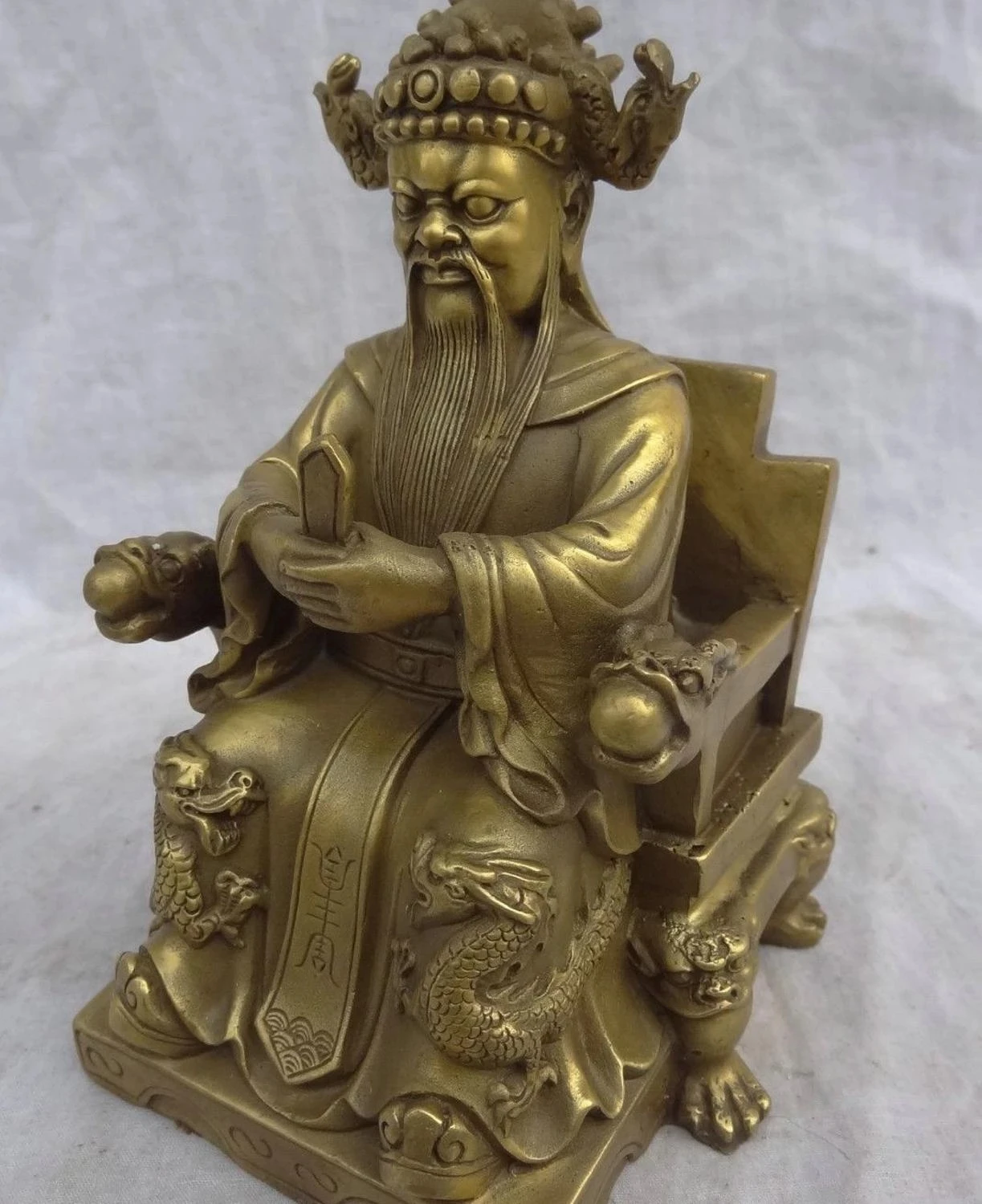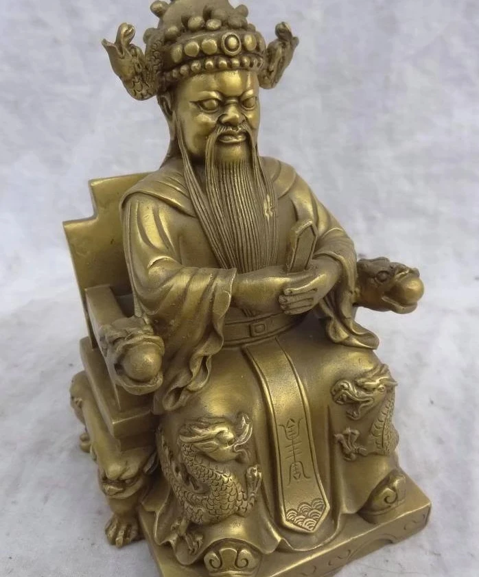 Chinese Folk Myth Pure Brass Rain Joss Dragon King Dragons God Statue Sculpture
