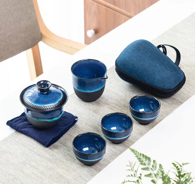 Chinese Kung Fu Travel Tea Set Ceramic Glaze Teapot Teacup Gaiwan Porcelain Teaset Kettles Teaware Sets Drinkware Tea Ceremony
