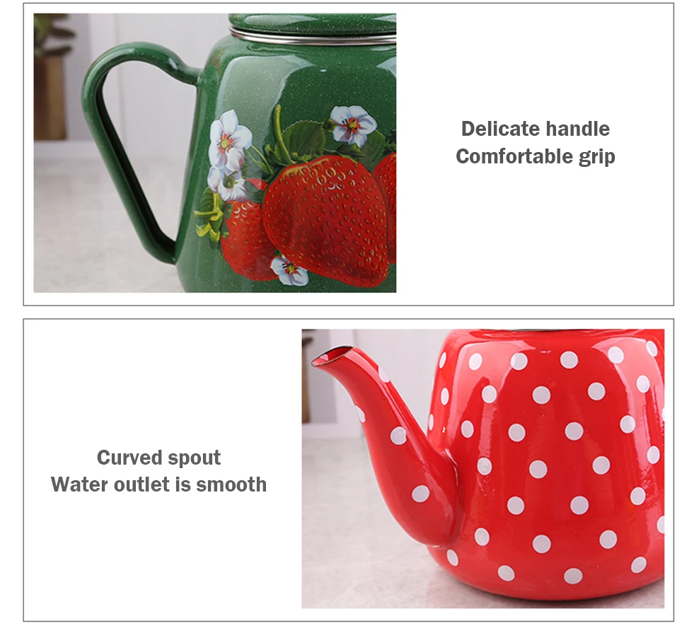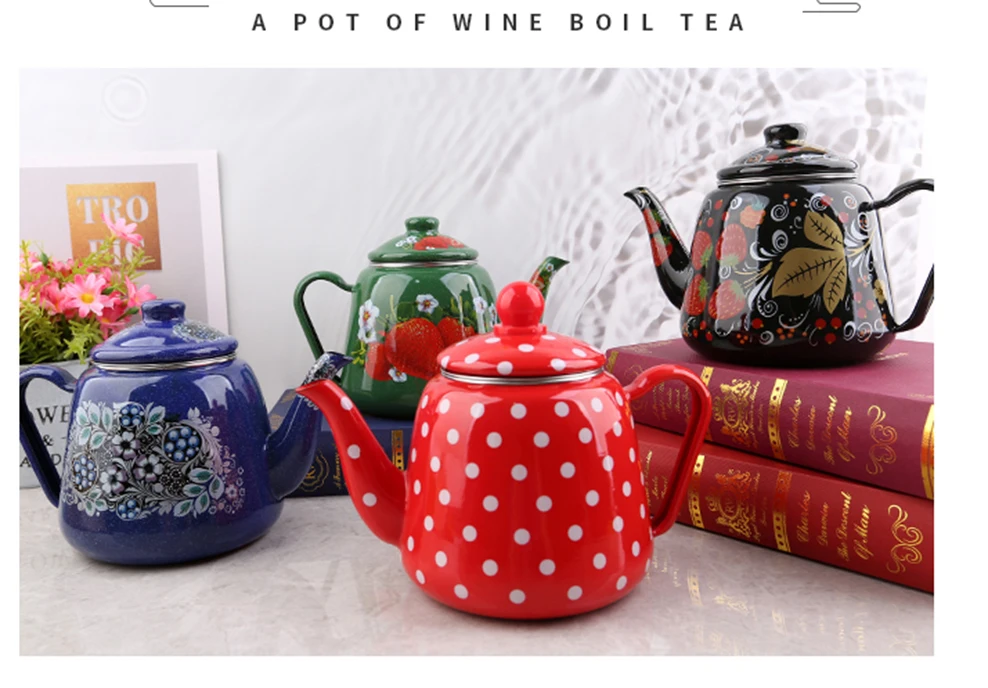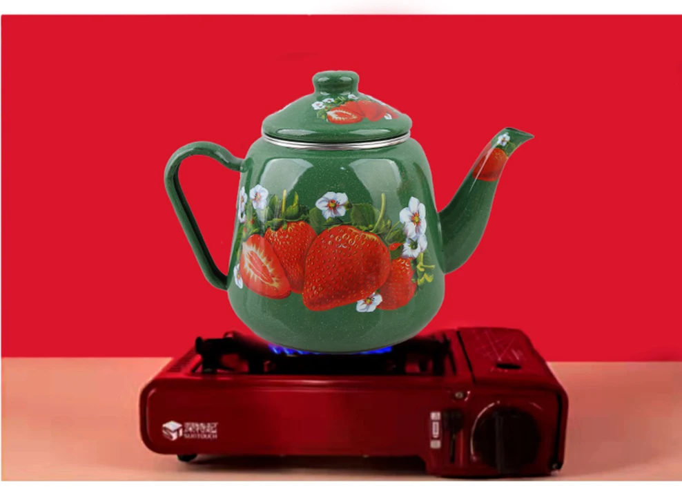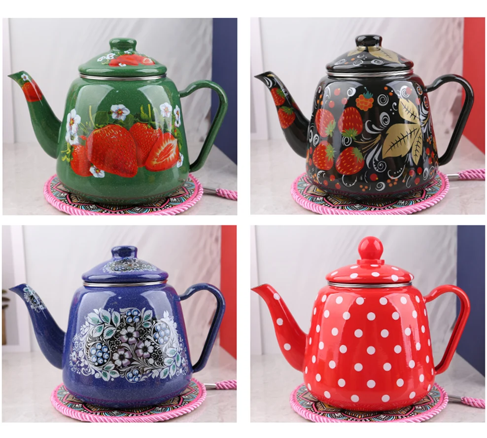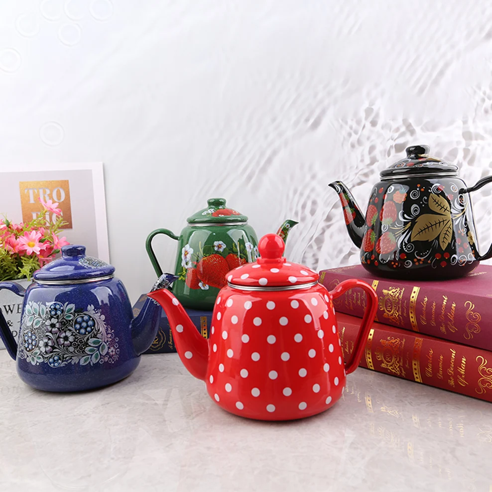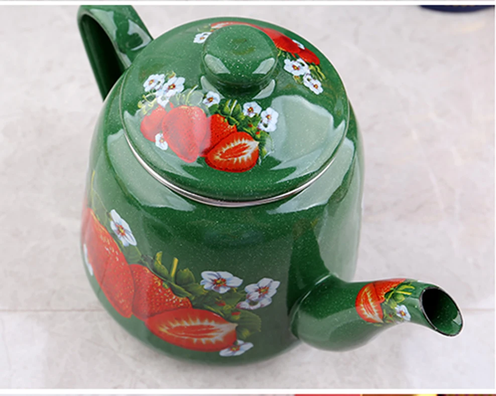 Chinese National Style Enamel Teapot Household Antique Enamel Kettle High Temperature Resistant Boil Overglaze Color Coffee Pot