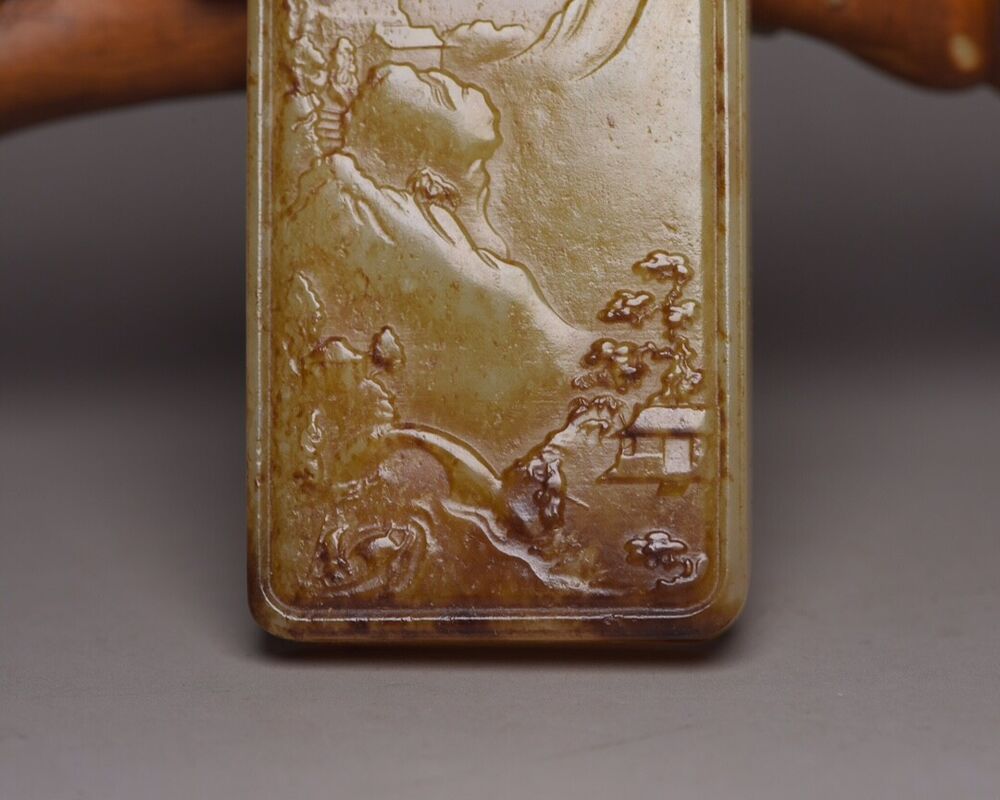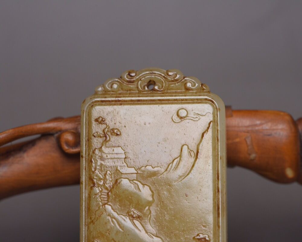 Chinese Natural Hetian Jade Carving Exquisite Landscape Statues Pendant Jewelry