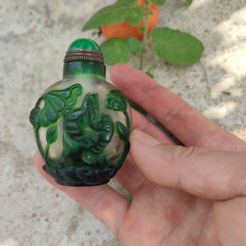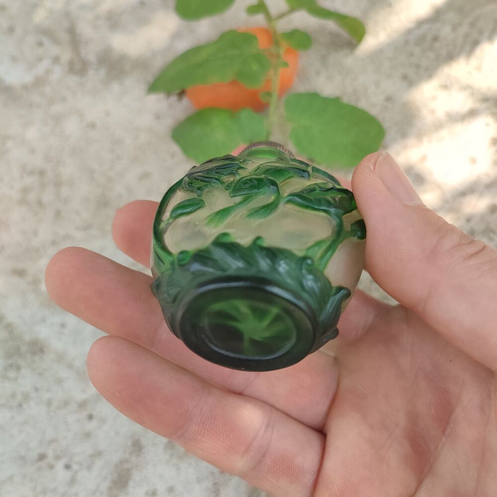 Old Beijing chinese colored glaze peking glass snuff bottle painted carved Figurines