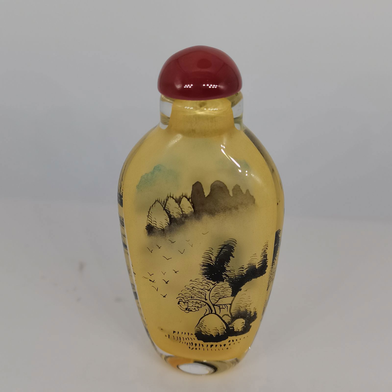 Chinese Old Beijing Glaze Inside Painting Landscape Exquisite Snuff Bottle Art