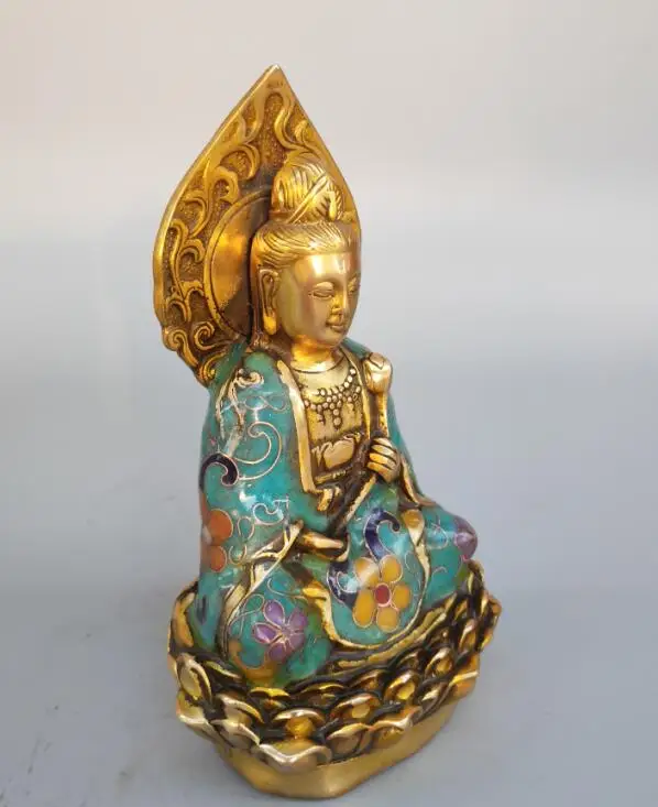 Chinese pure brass cloisonne guanyin bodhisattva statue