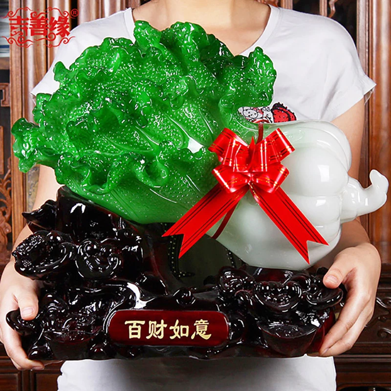 Chinese Style Hundred Lucky Jade Cabbage Ornaments New House Living Room TV Cabinet Wine Cabinet Home Housewarming Decorations