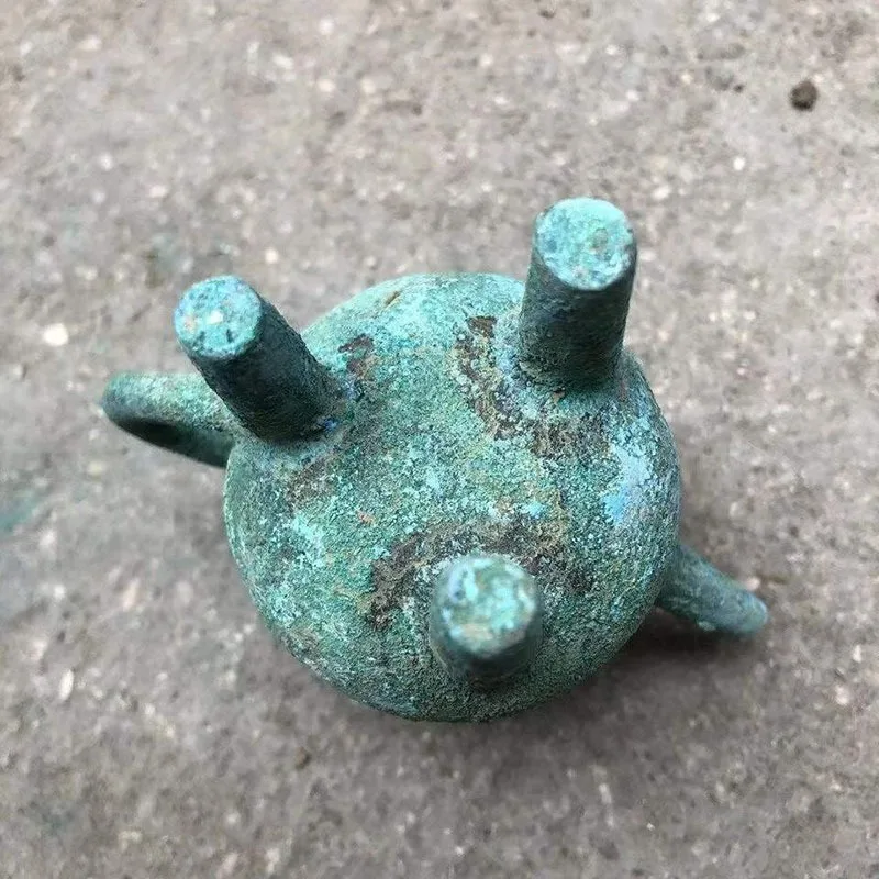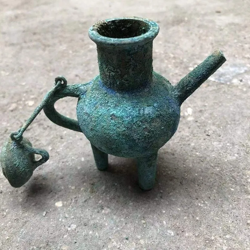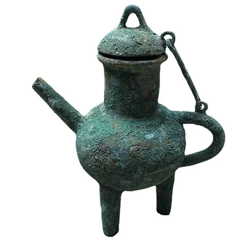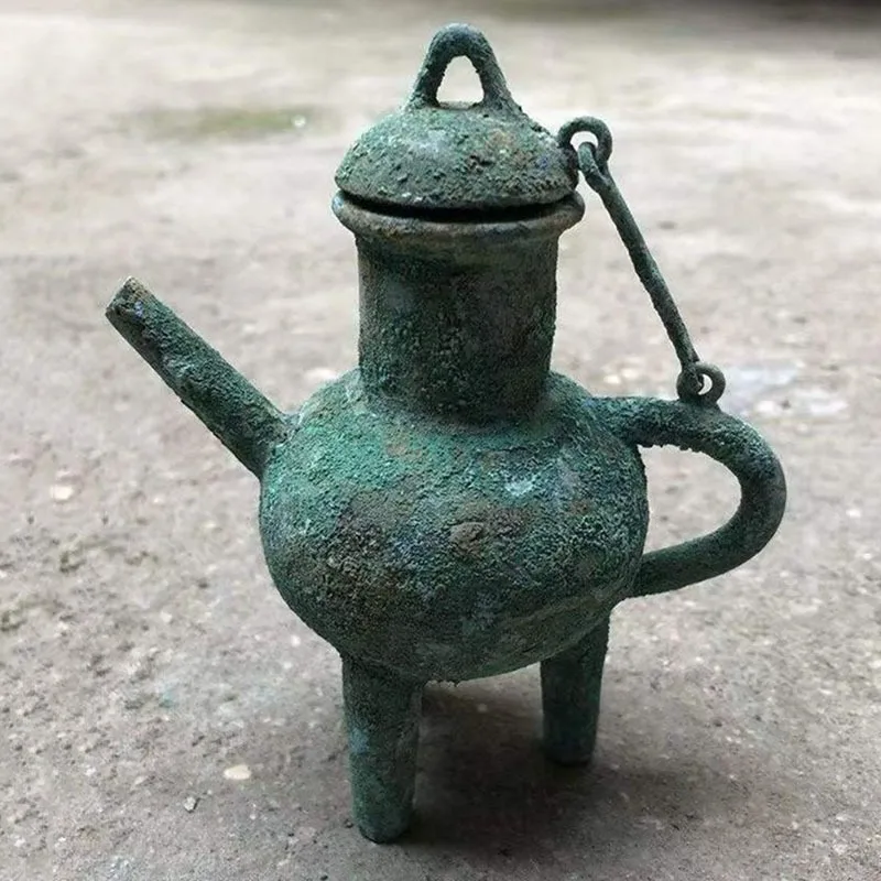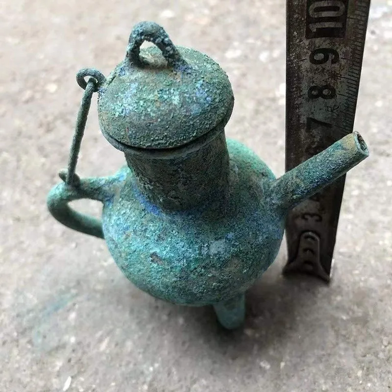 Chinese Style Teapots Ornaments, Green Rust Bronze Pot, Metal Utensils, Antique Ornaments, Collection Gift, Ornaments