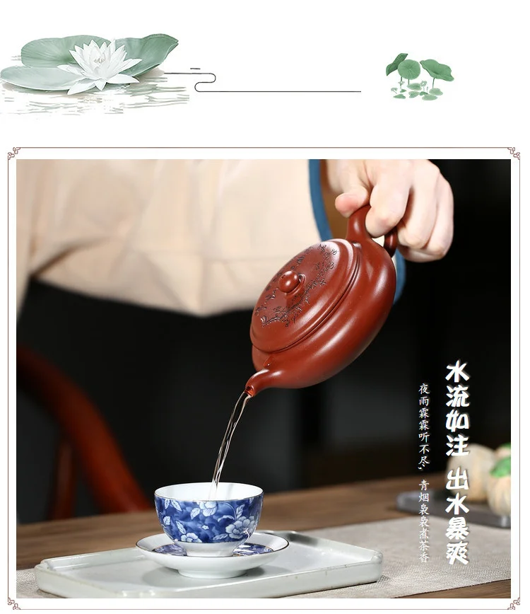 Yixing Purple Clay Teapot Original Ore Purple Clay Dahongpao Flat Antique Teapot Teapot Collection Gift Tea Set