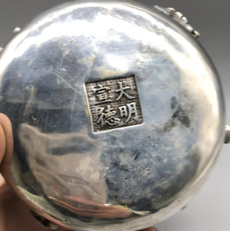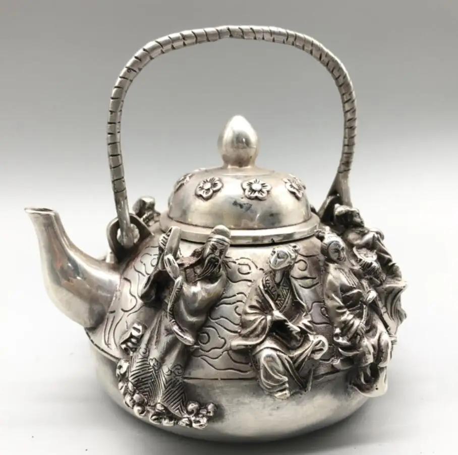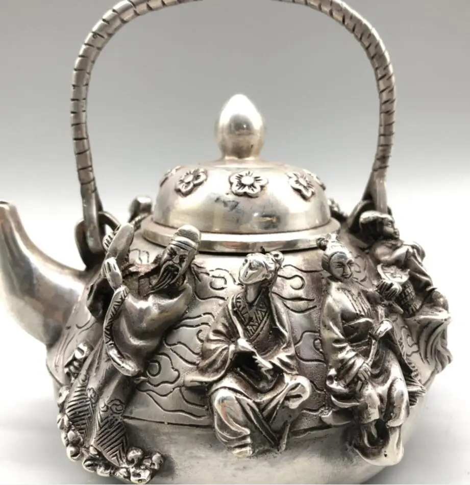 Chinese White copper eight immortals teapot crafts statue