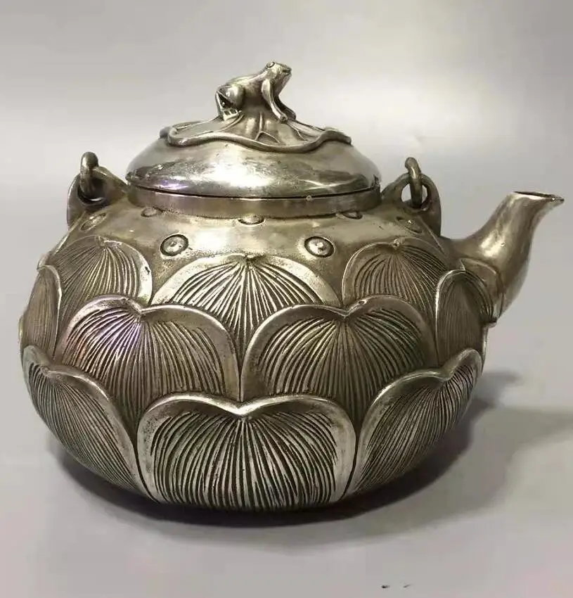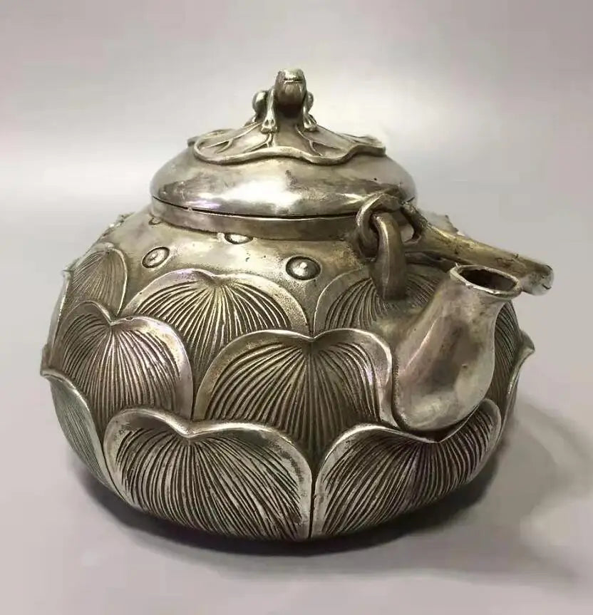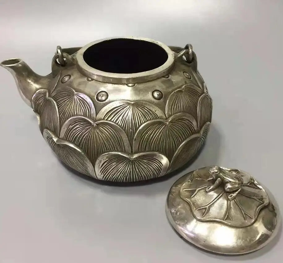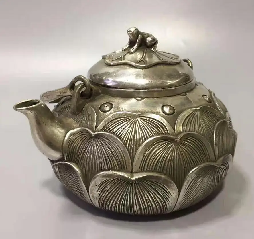 Chinese White copper lotus flower teapot crafts statue