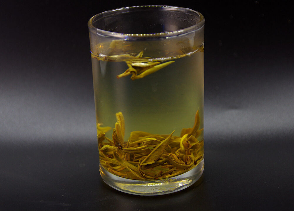 Appearance: The tea leaves are partly covered with white down and slightly curled and the infusion has a bright yellow color.