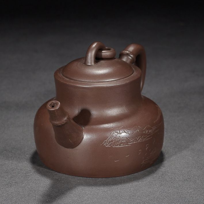 Chinese Yixing Purple Clay Teapot Zisha Ceramic Landscape Teaware Collection Art