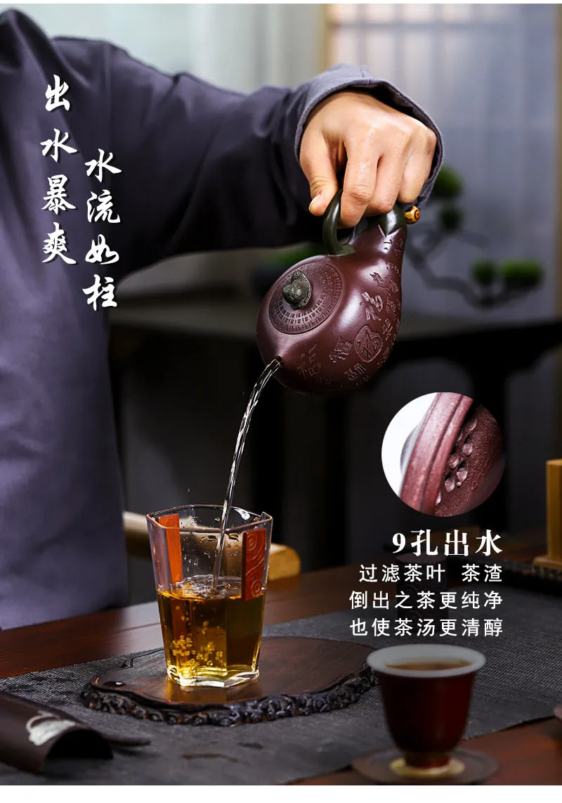Chinese Yixing Purple Clay Teapots Raw Ore Dahongpao Filter Tea Pot Hand Painted Landscape Tea Kettle Home Teaware Supplies