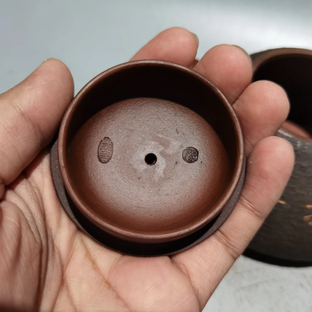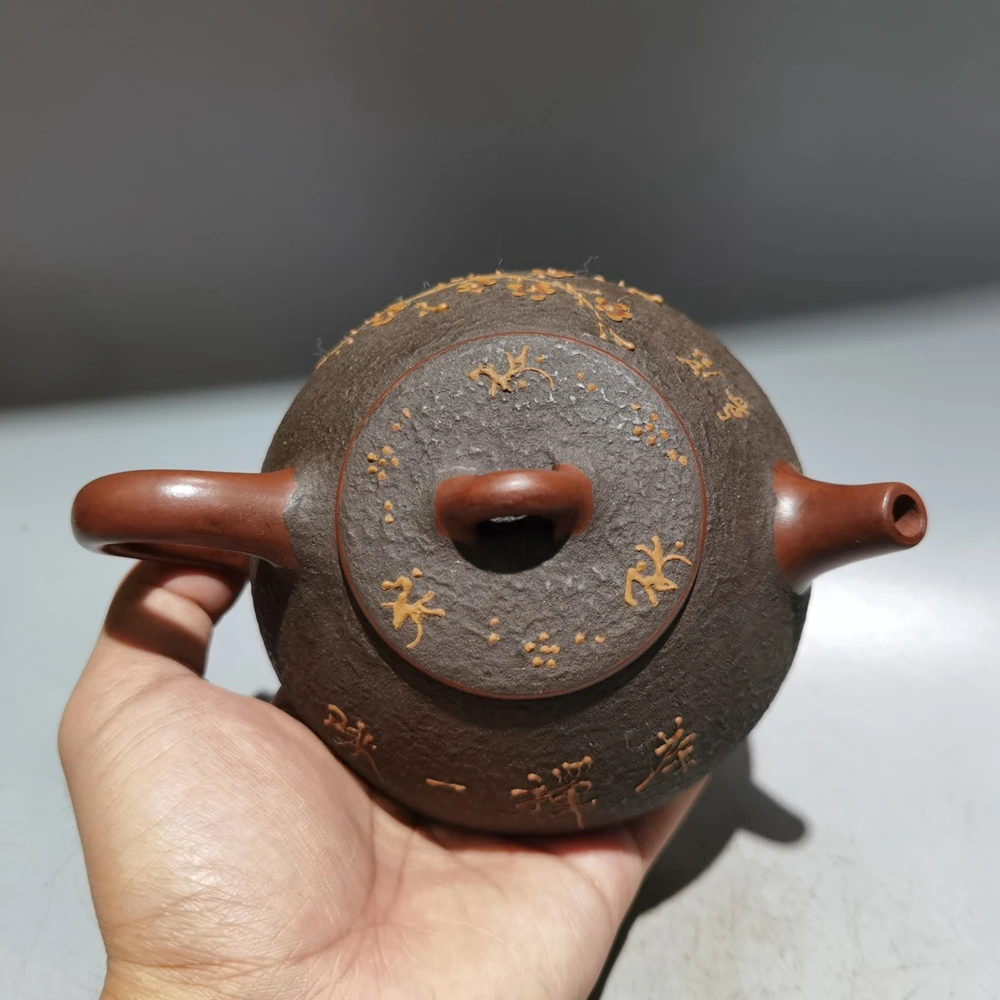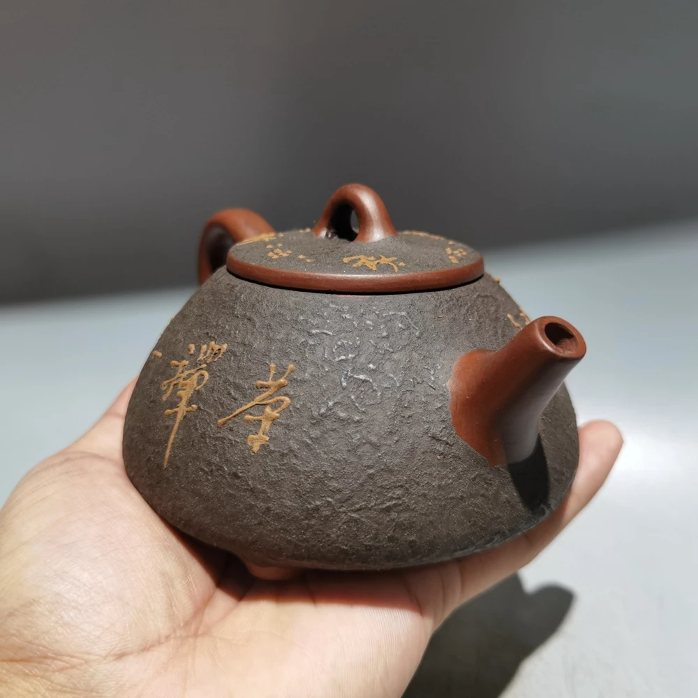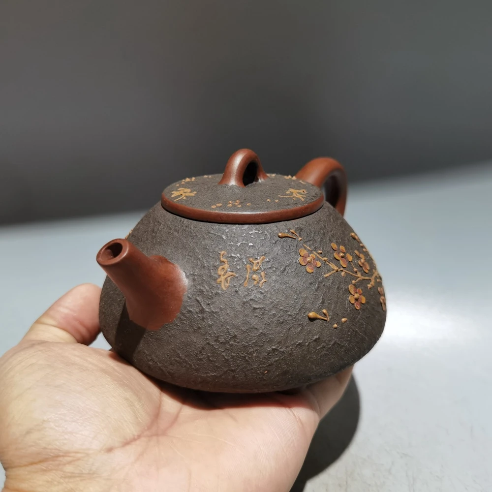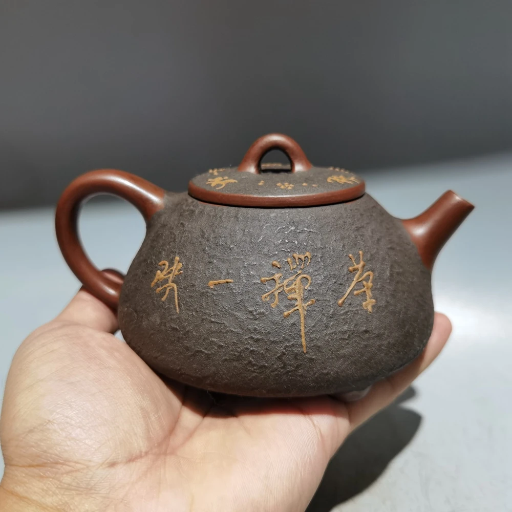 Chinese Yixing Zisha Clay Teapot Clay Painted Stone Ladle Pot Gu Jingzhou 320ml