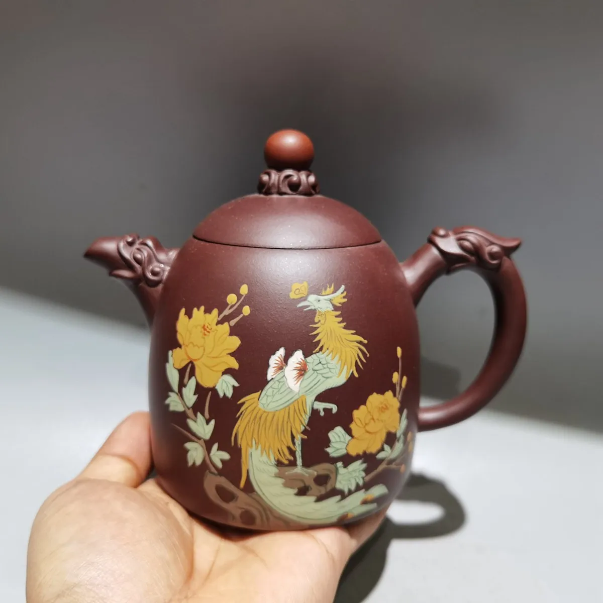 Chinese Yixing Zisha Clay Teapot Dragon Phoenix Pot Zhou Guojun 480ml