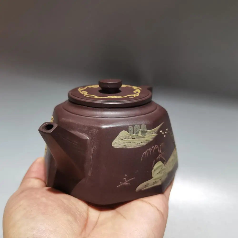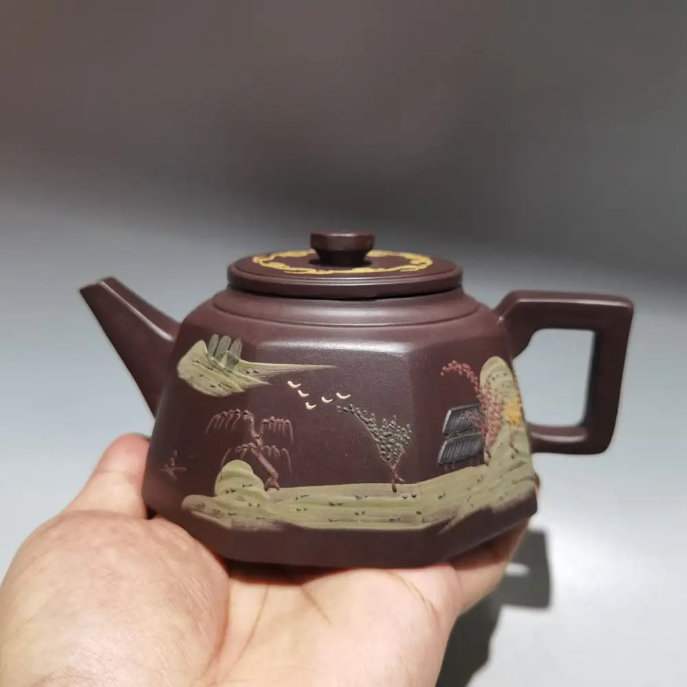 Chinese Yixing Zisha Clay Teapot Eight square clay painting Pot Jinding trademark 320ml