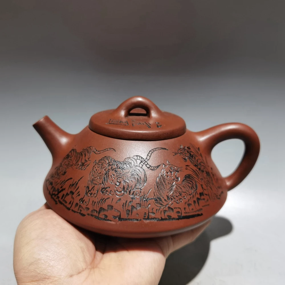 Chinese Yixing Zisha Clay Teapot Eight Tiger Picture Pot Fan Zhenggen 400ml