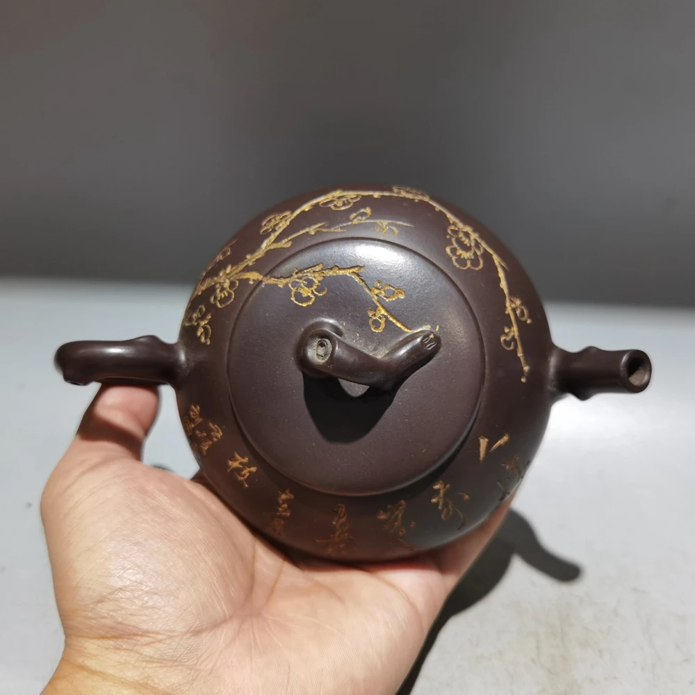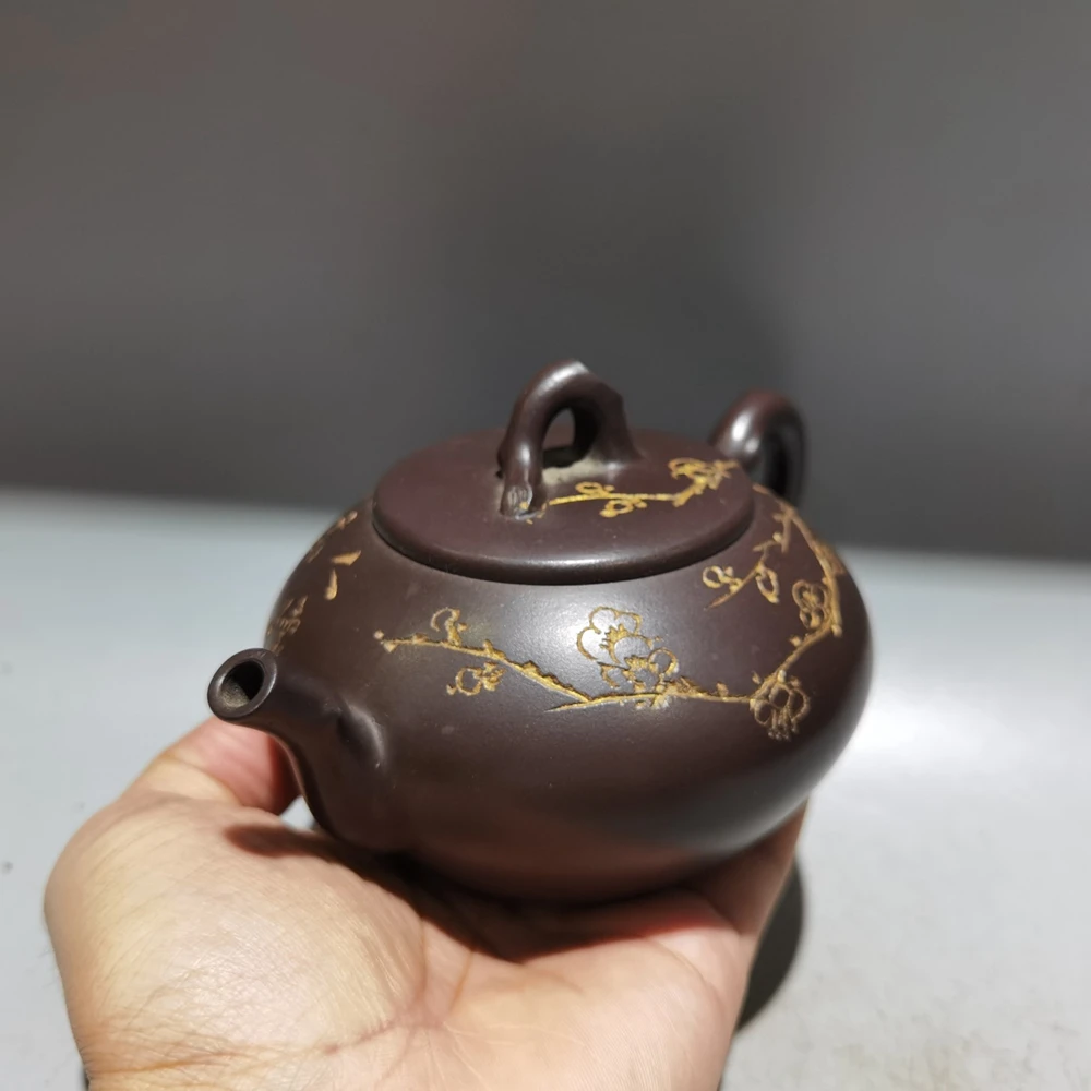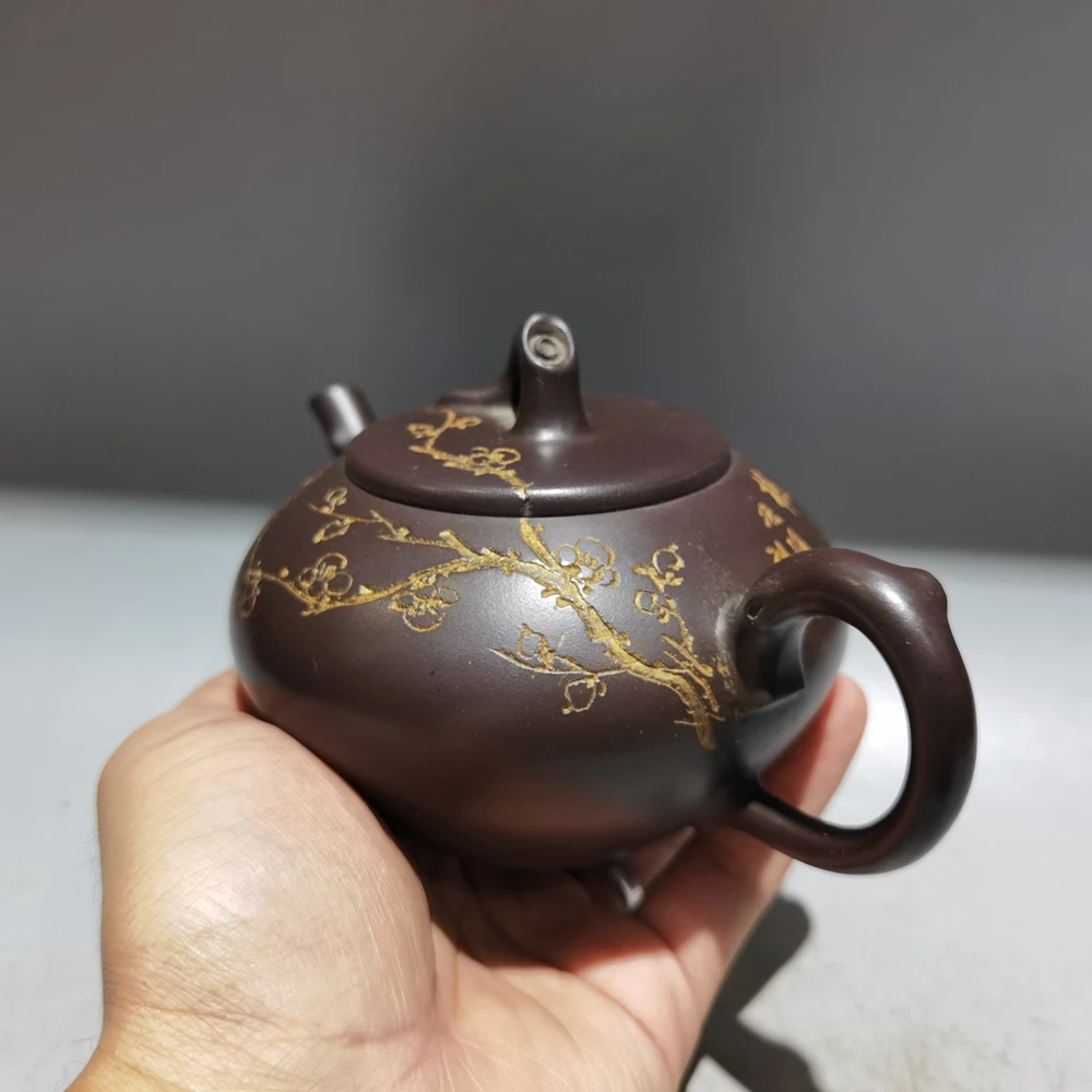 Chinese Yixing Zisha Clay Teapot Gilding Plum Blossom Pot Pei Shimin 280ml