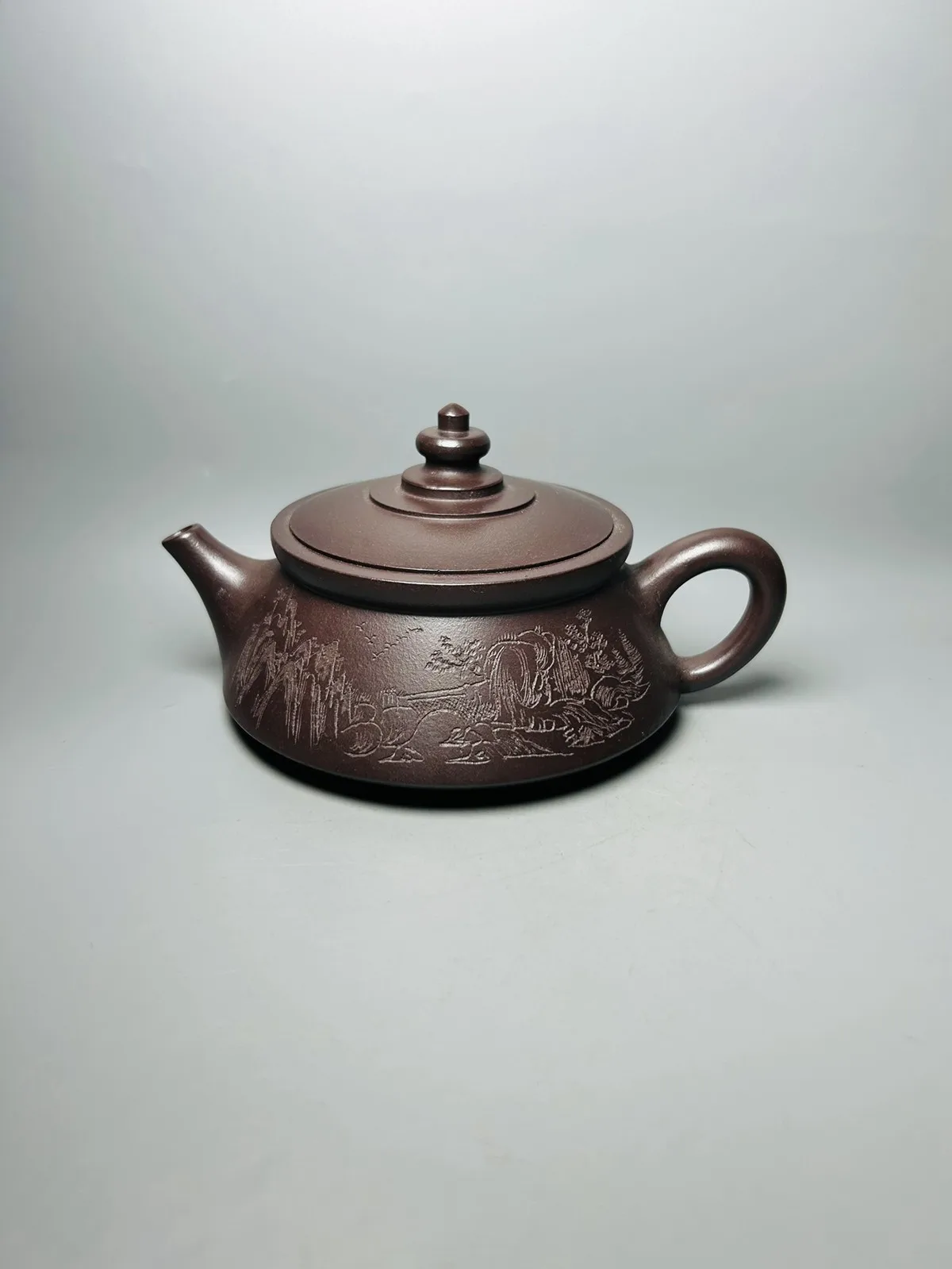 Chinese Yixing Zisha Clay Teapot handcarved landscape Pot Zhu Zhiyuan 320ml