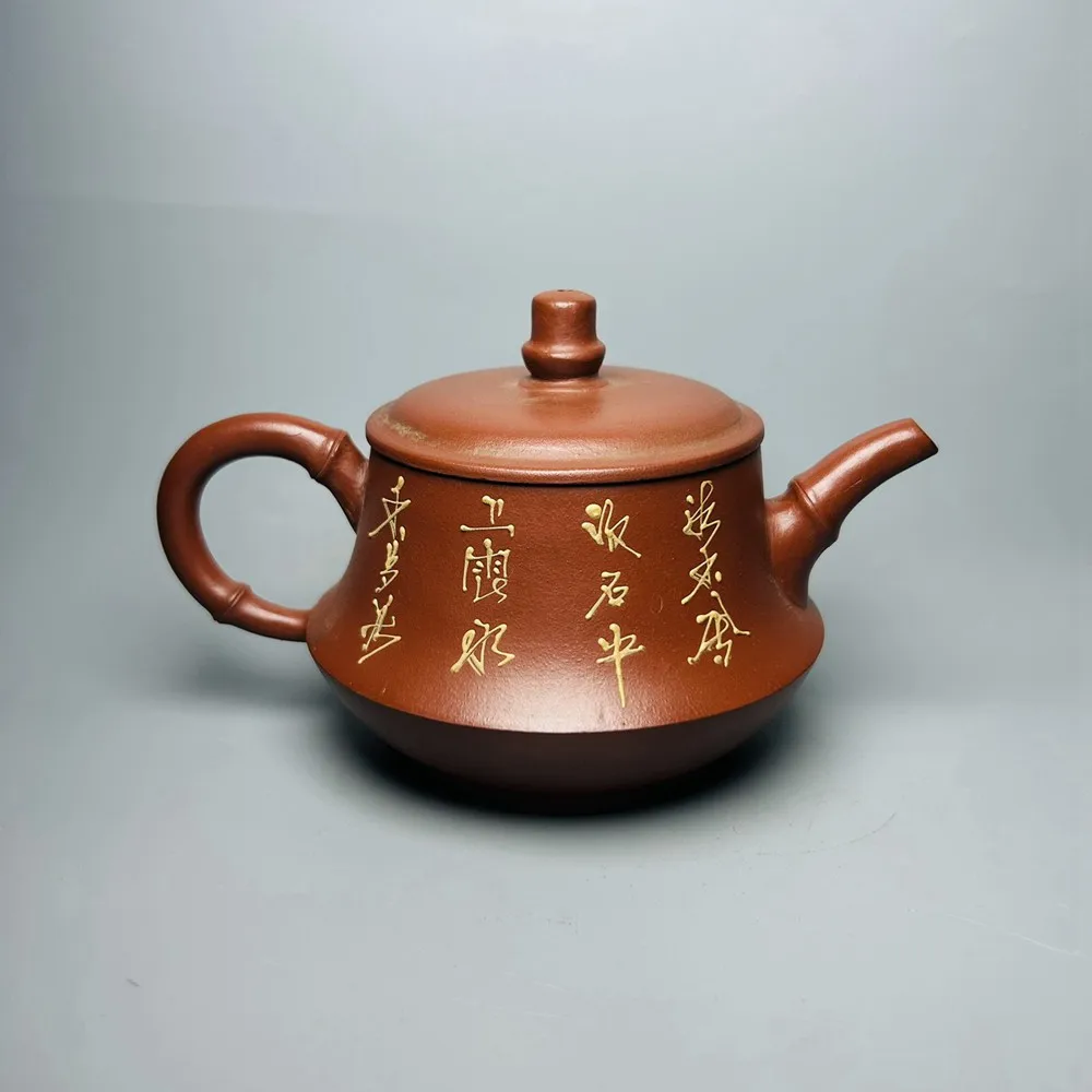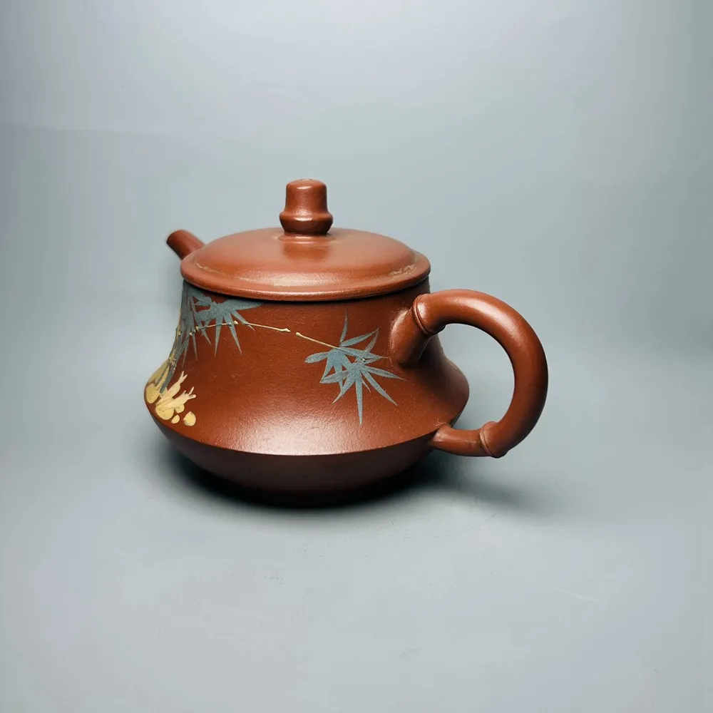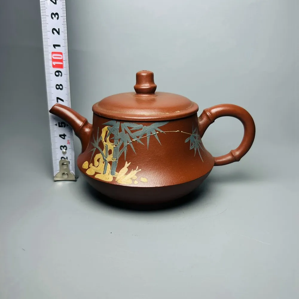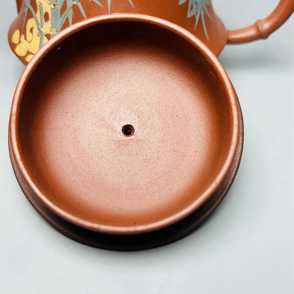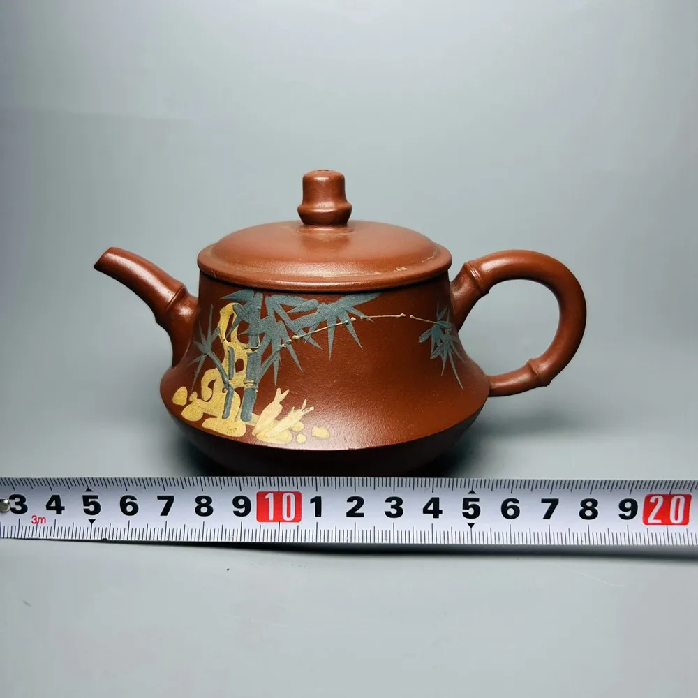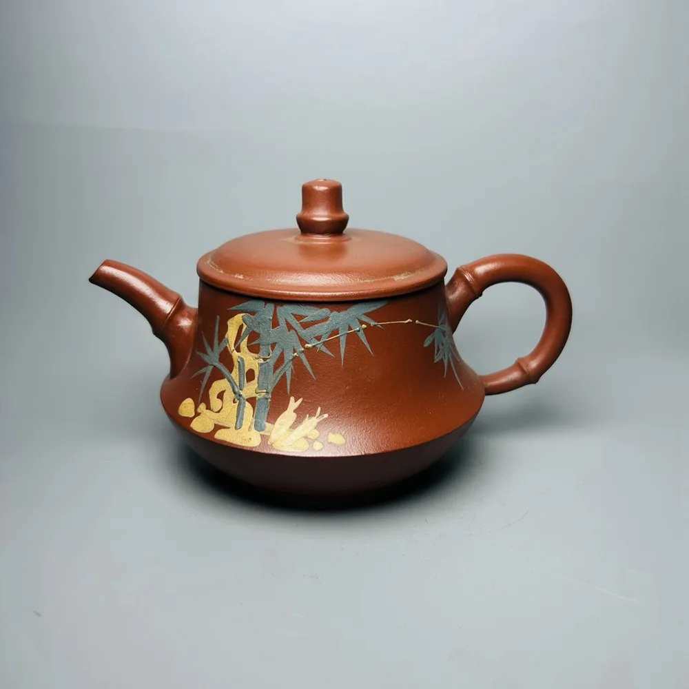 Chinese Yixing Zisha Clay Teapot Mud painted bamboo joint Pot Jinding Trademark 400ml