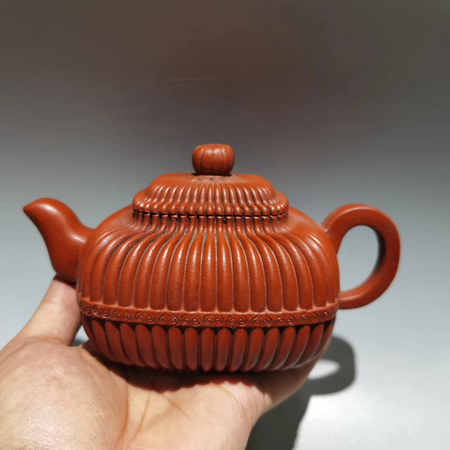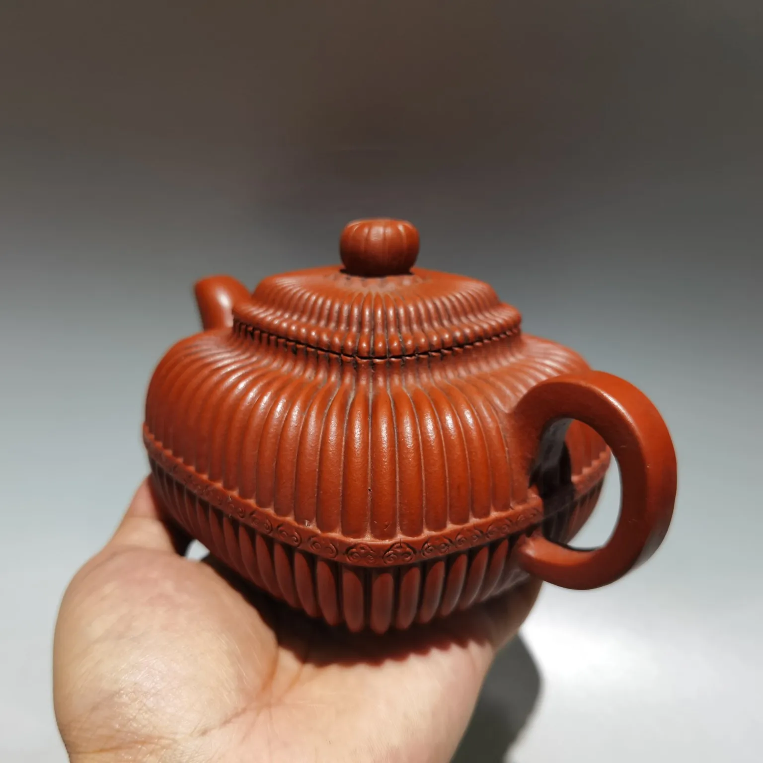 Chinese Yixing Zisha Clay Teapot Ribbed Square Pot Gu Jingzhou 360ml