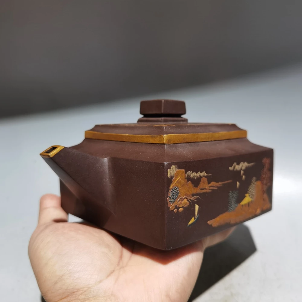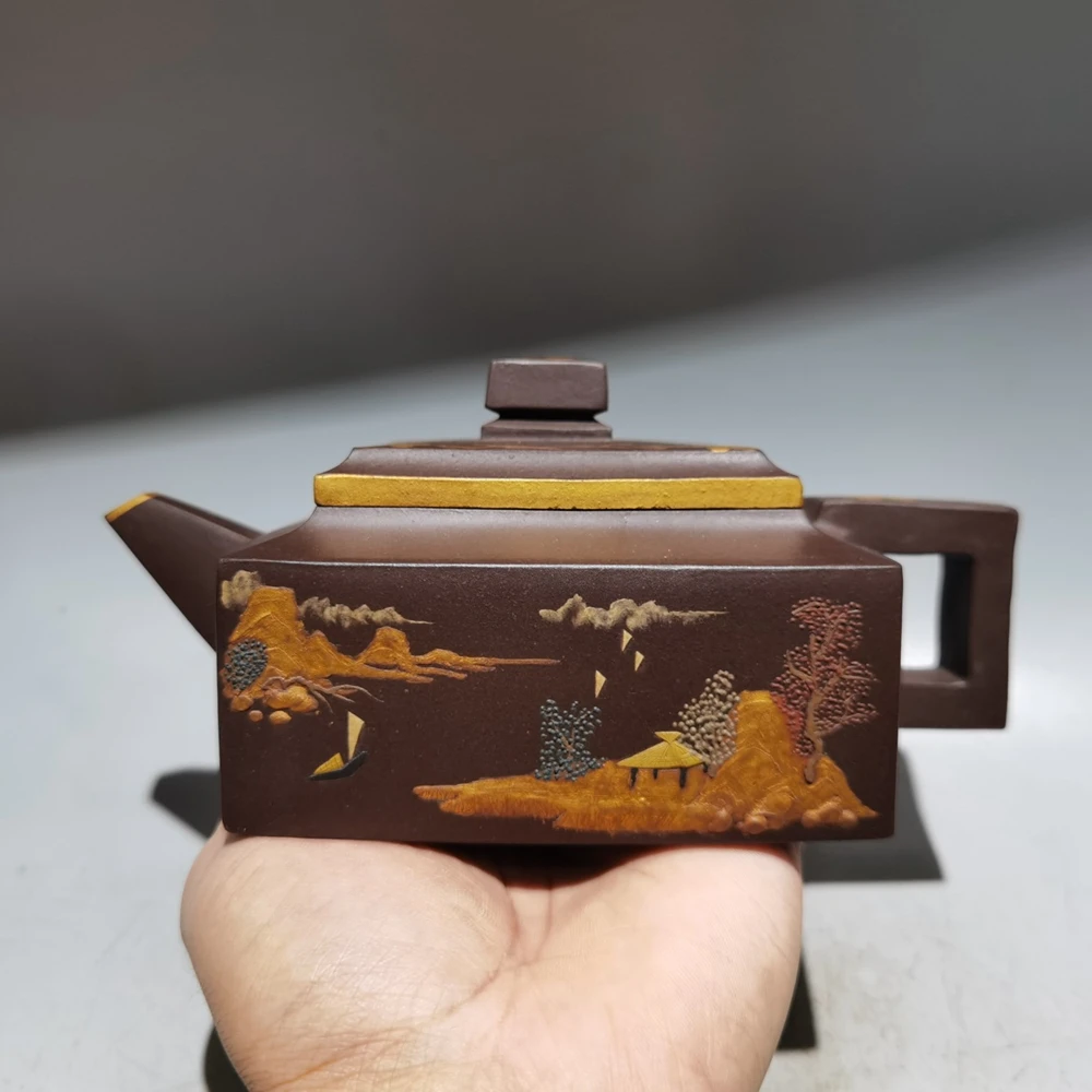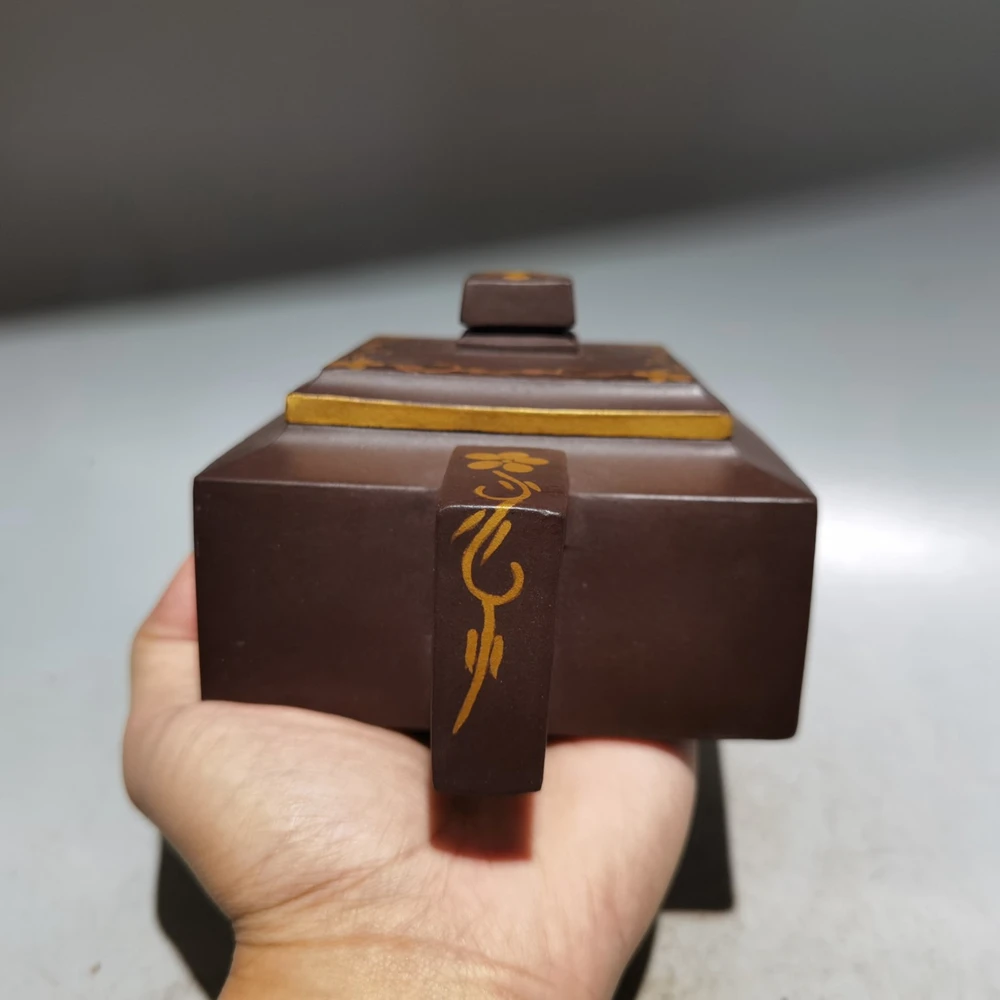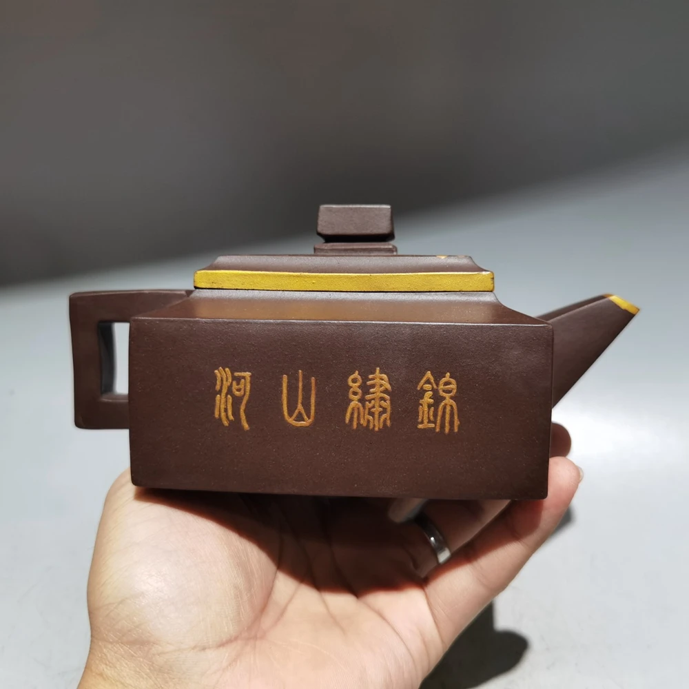 Chinese Yixing Zisha Clay Teapot Sifang Golden Pot Jinding trademark 380ml