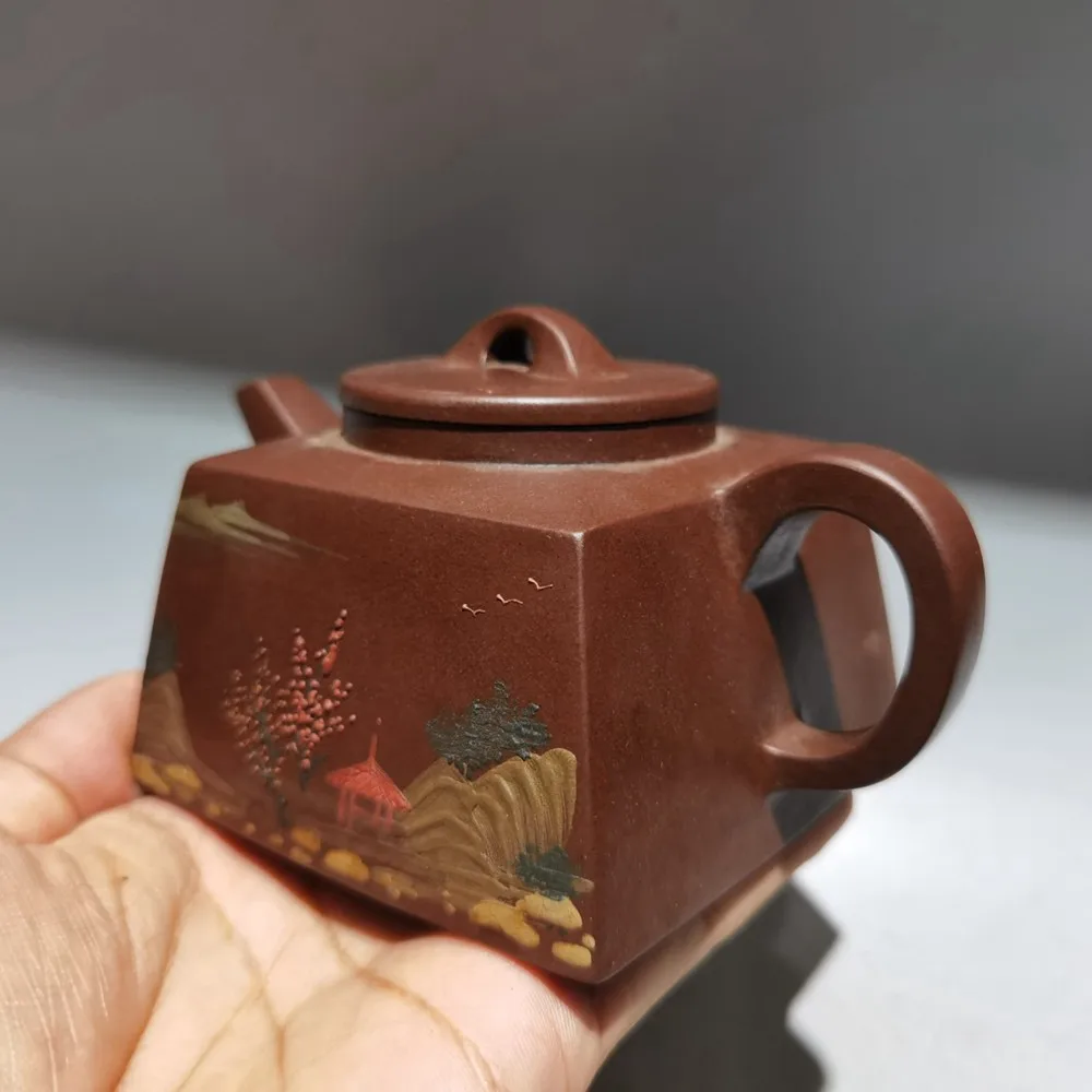 Chinese Yixing Zisha Clay Teapot Sifang Mud Painting Pot Chu Jianfei 280ml