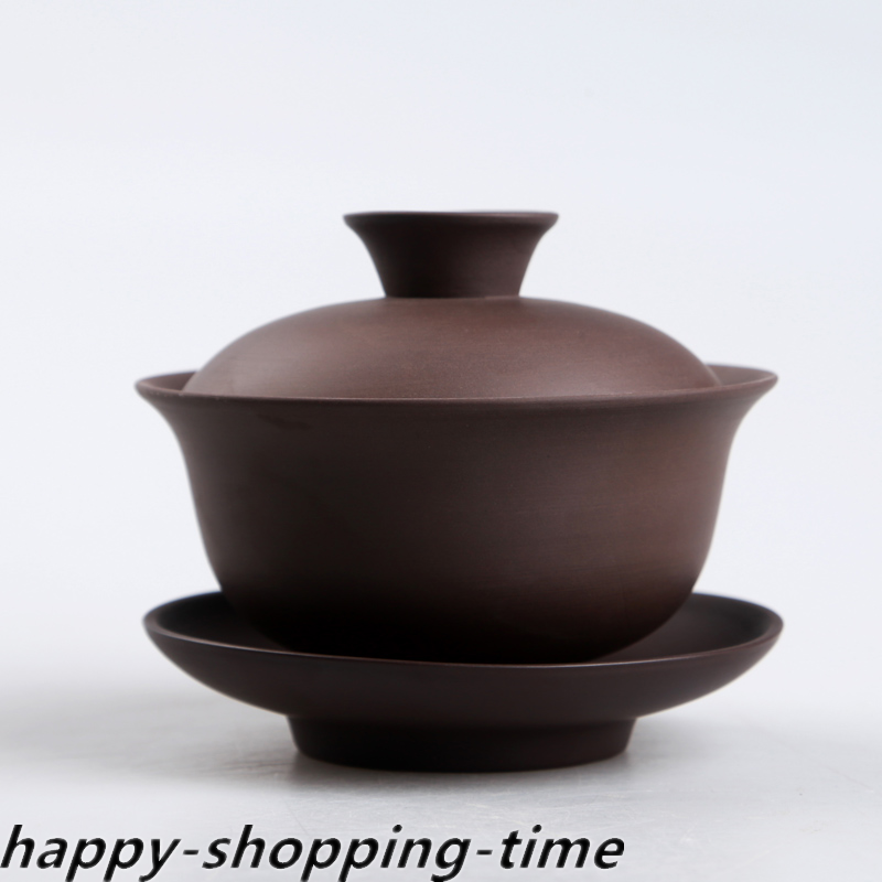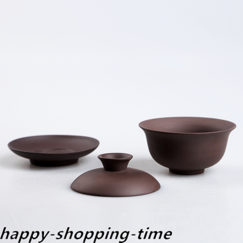 Chinese yixing zisha gaiwan purple grit tureen with cup saucer lid 120ml China
