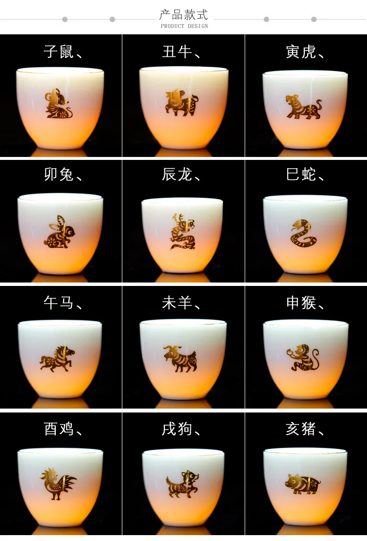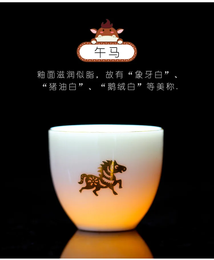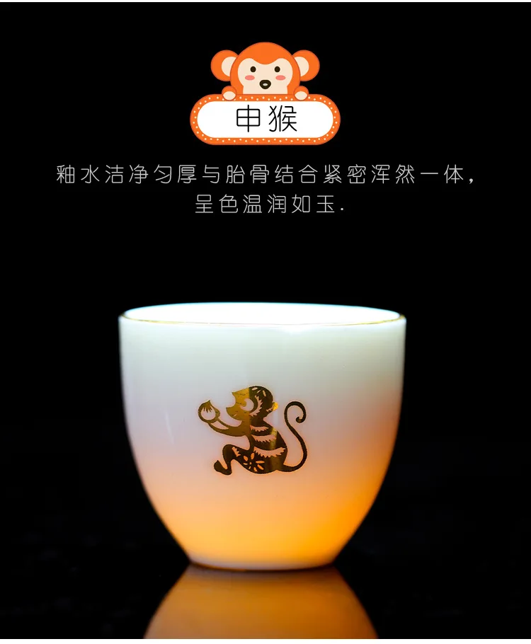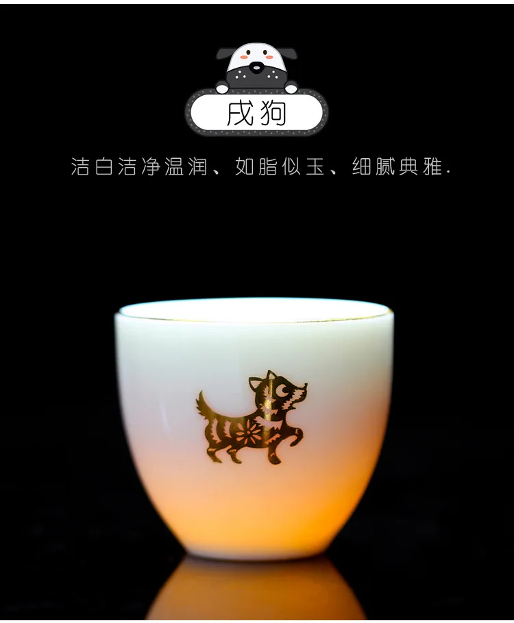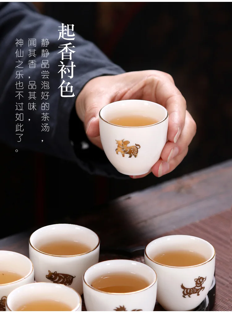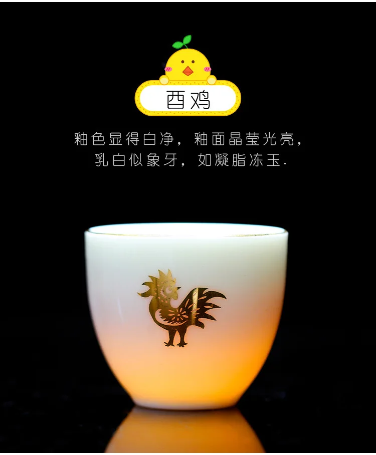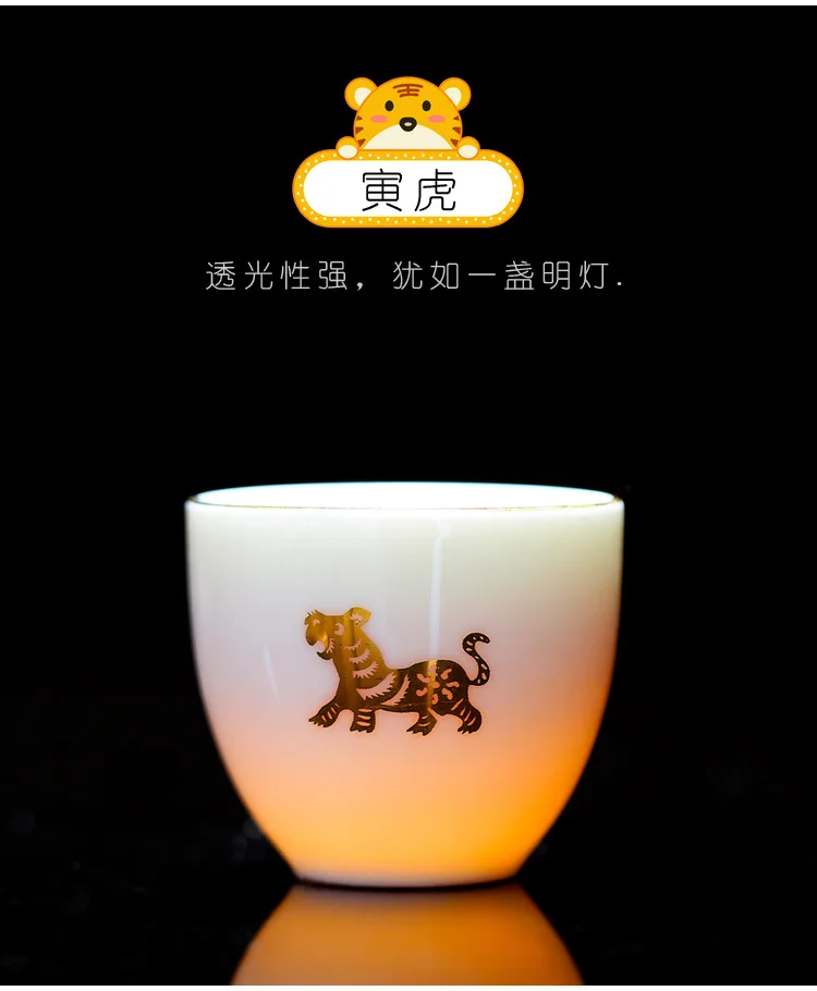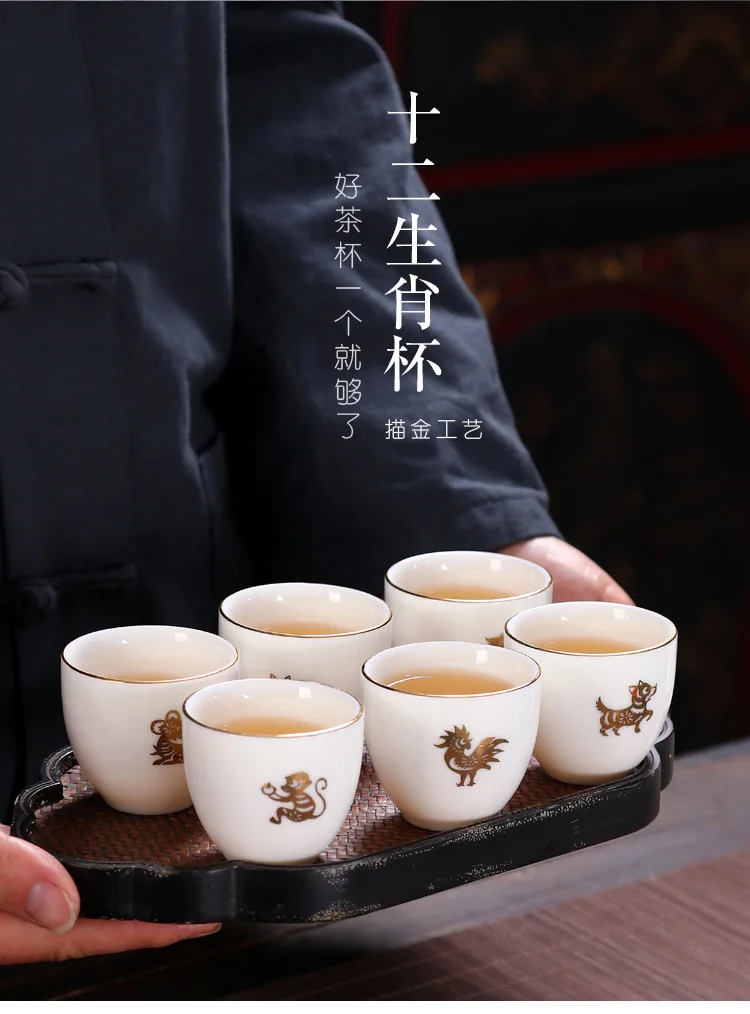 Chinese Zodiac Tea Cup Drawing Gold White Porcelain Teacup Retro Teaware Ceramic Tea Cup Set Master Cup Kung Fu Tea Set Tea Bowl
