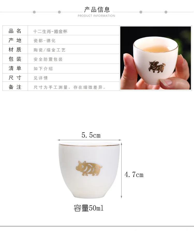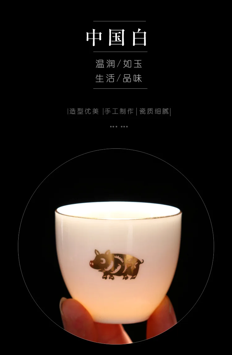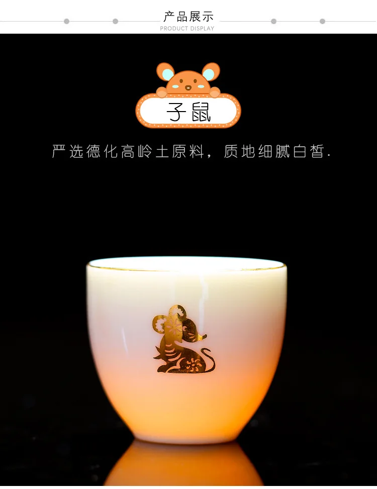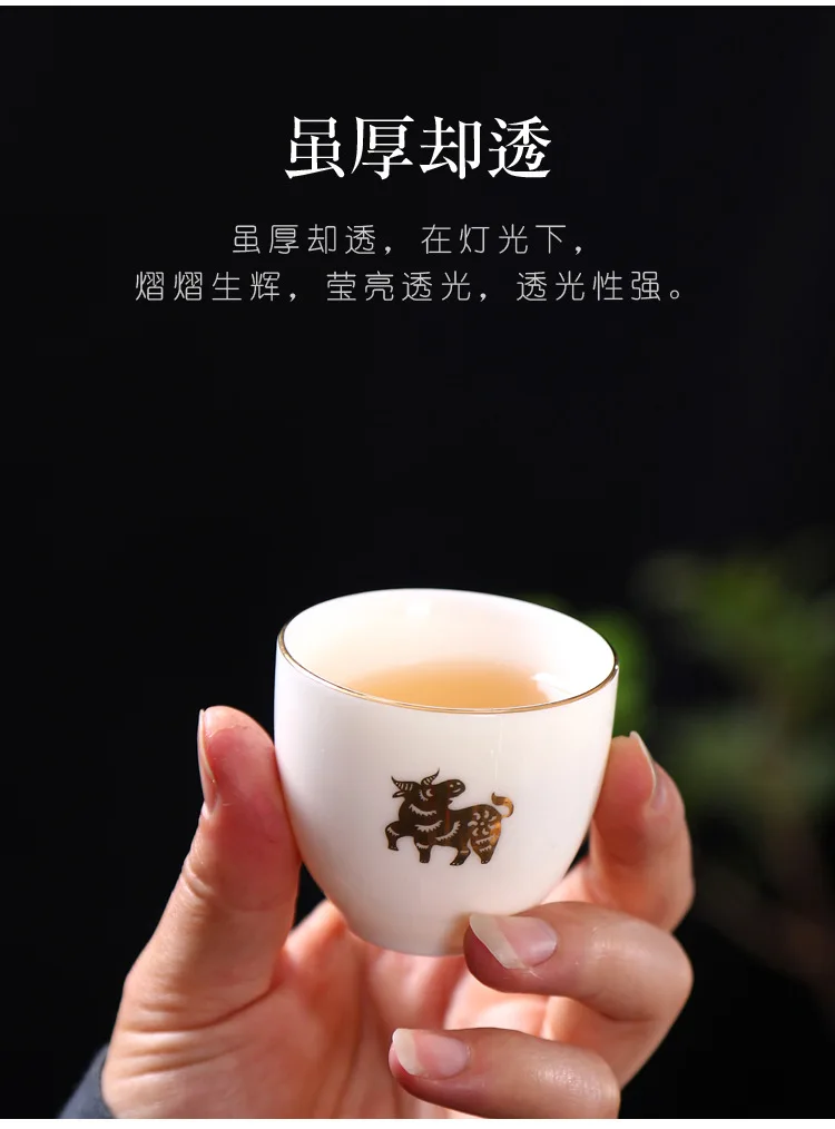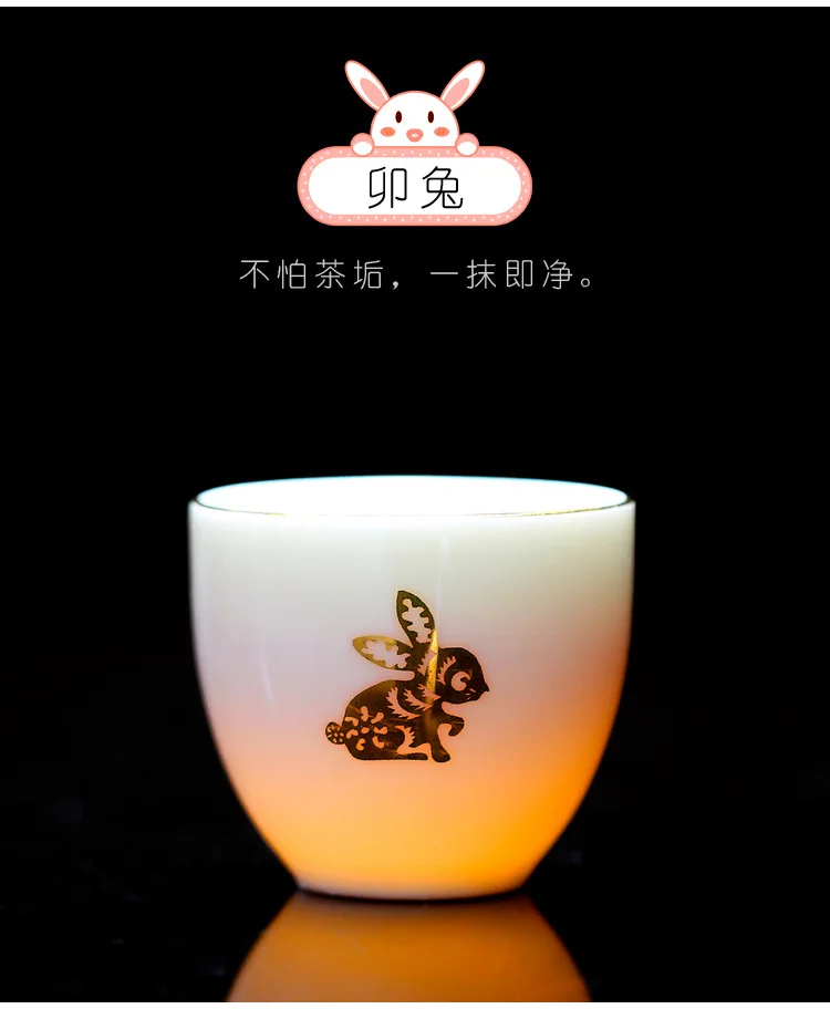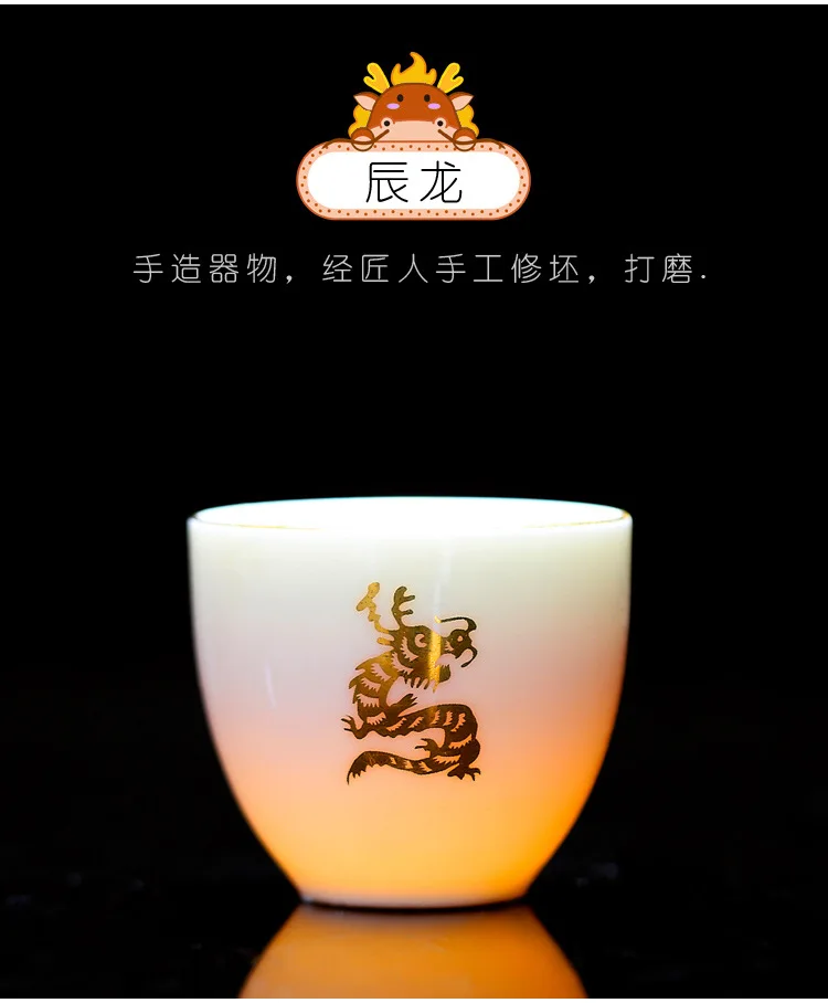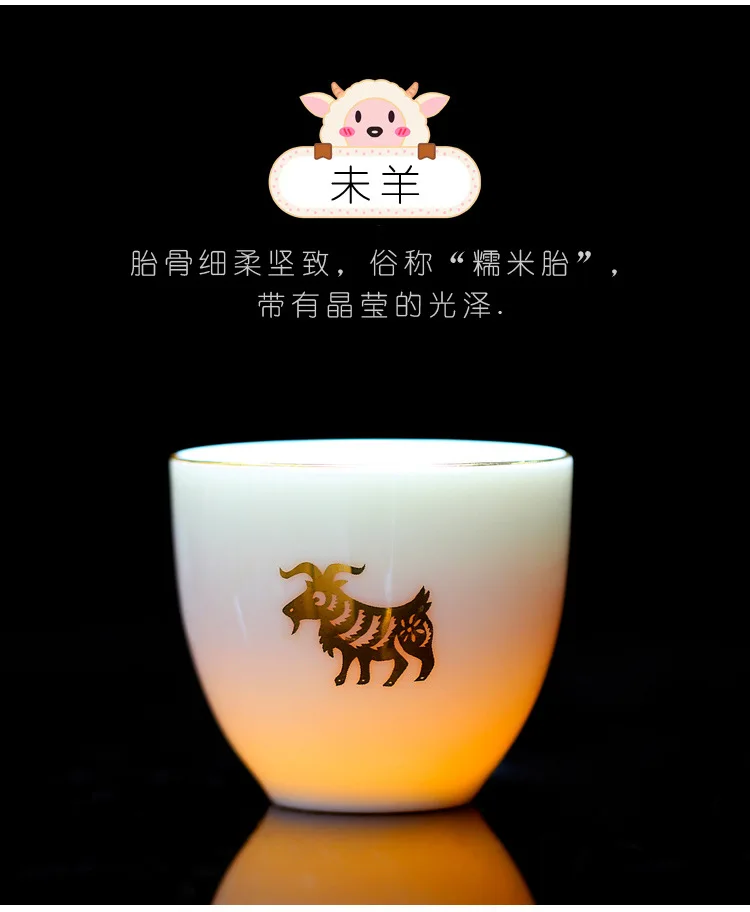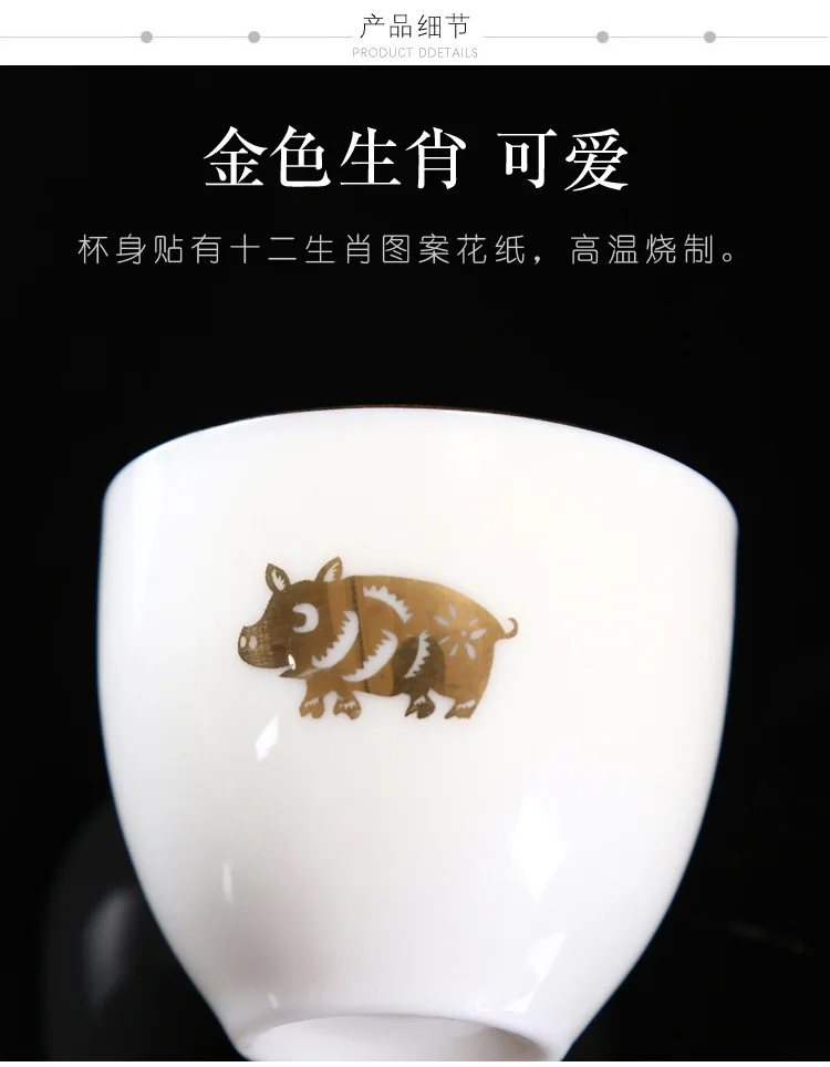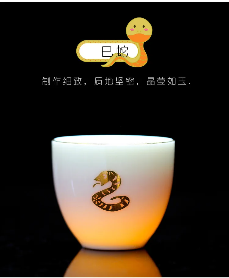 Chinese Zodiac Tea Cup Drawing Gold White Porcelain Teacup Retro Teaware Ceramic Tea Cup Set Master Cup Kung Fu Tea Set Tea Bowl