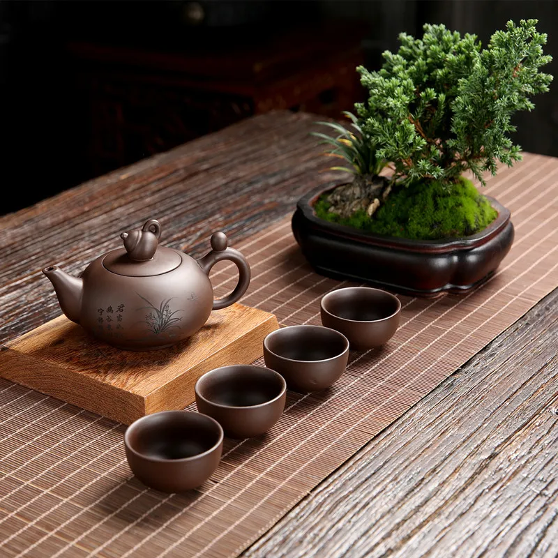 Chinses Yixing Zisha Teapot Set Master Teaware Handmade Gongfu Tea Kettle Tea Cups Purple Clay Tea Pots 1 Pot 4 Cups