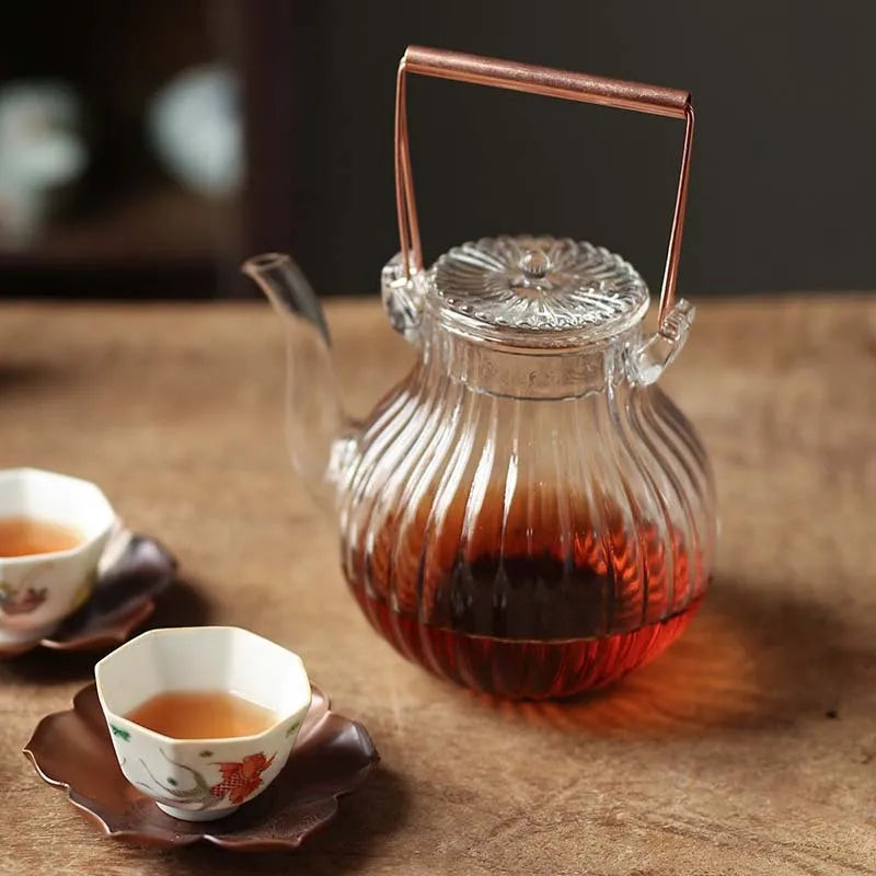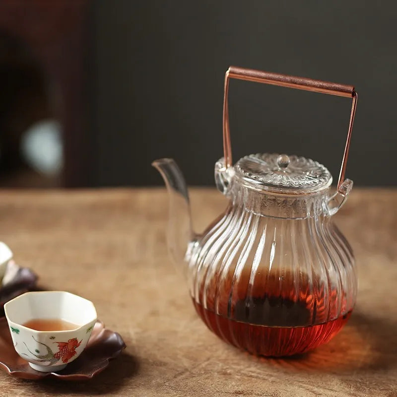 Chrysanthemum Petal Pattern Heat Resistant Glass Teapot Tea Kettle Pu Erh Gaiwan Infuser Teapot for Infusion Set Pot Pots Puer