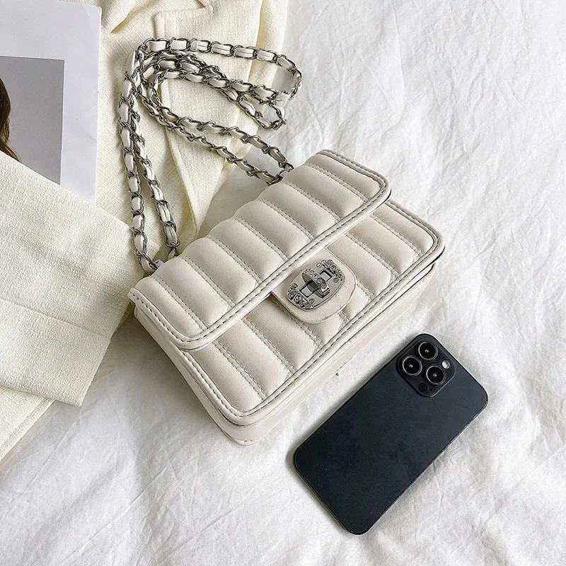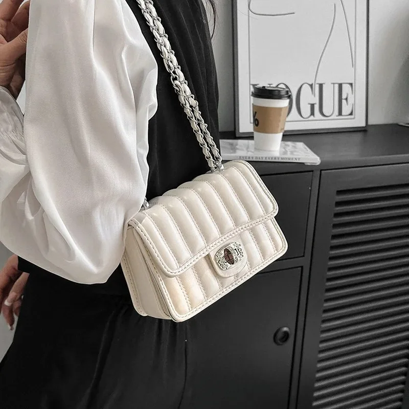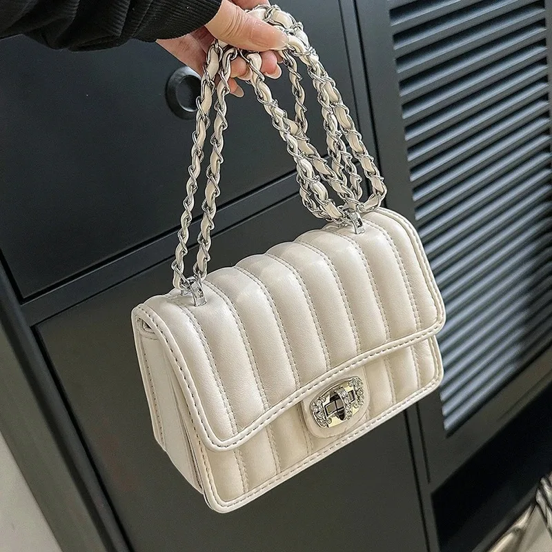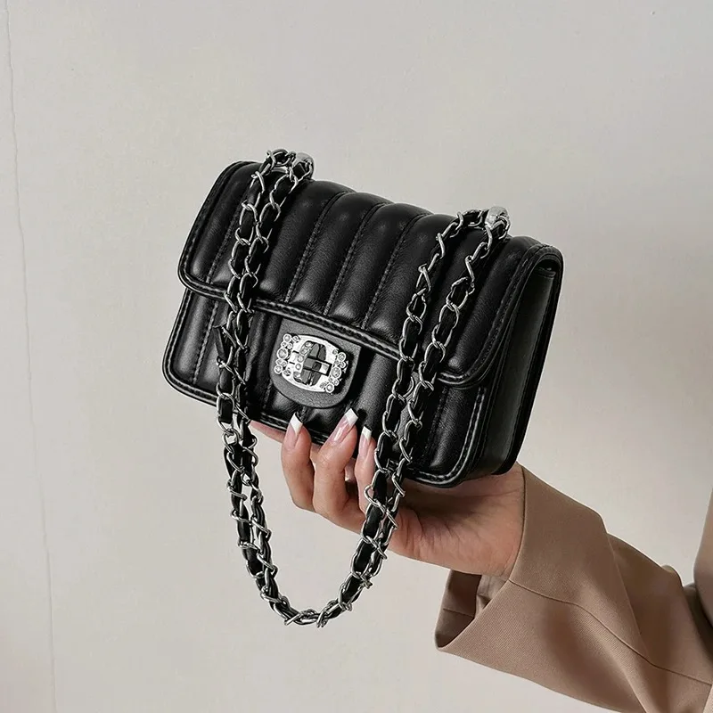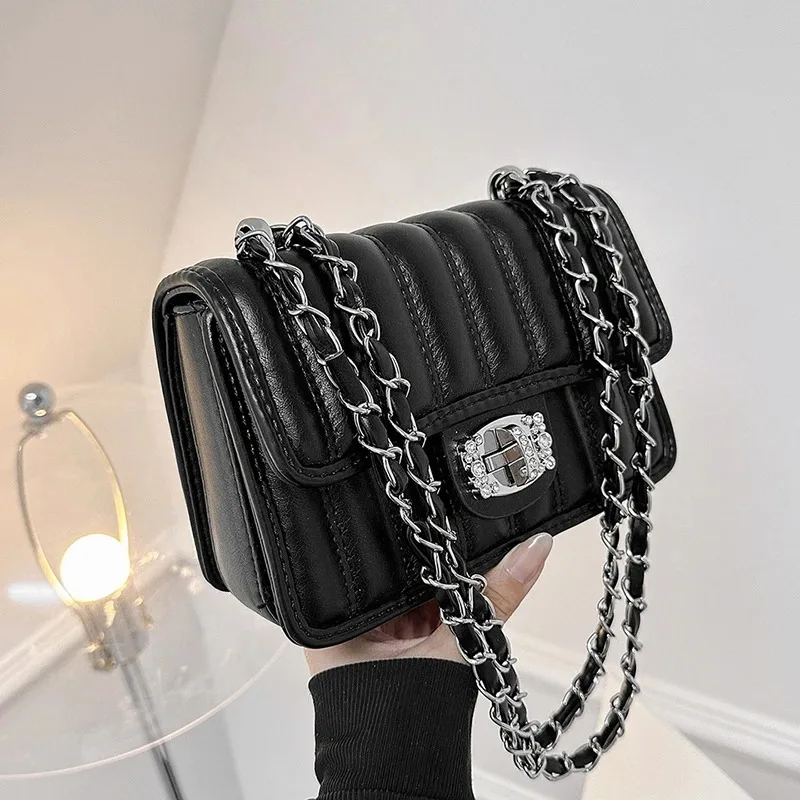 Classic Women's Shoulder Fashionable and Versatile Crossbody Quilted Chain Bag, Multi-layered Small Square Fragrance Style