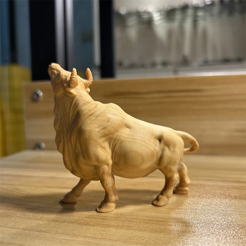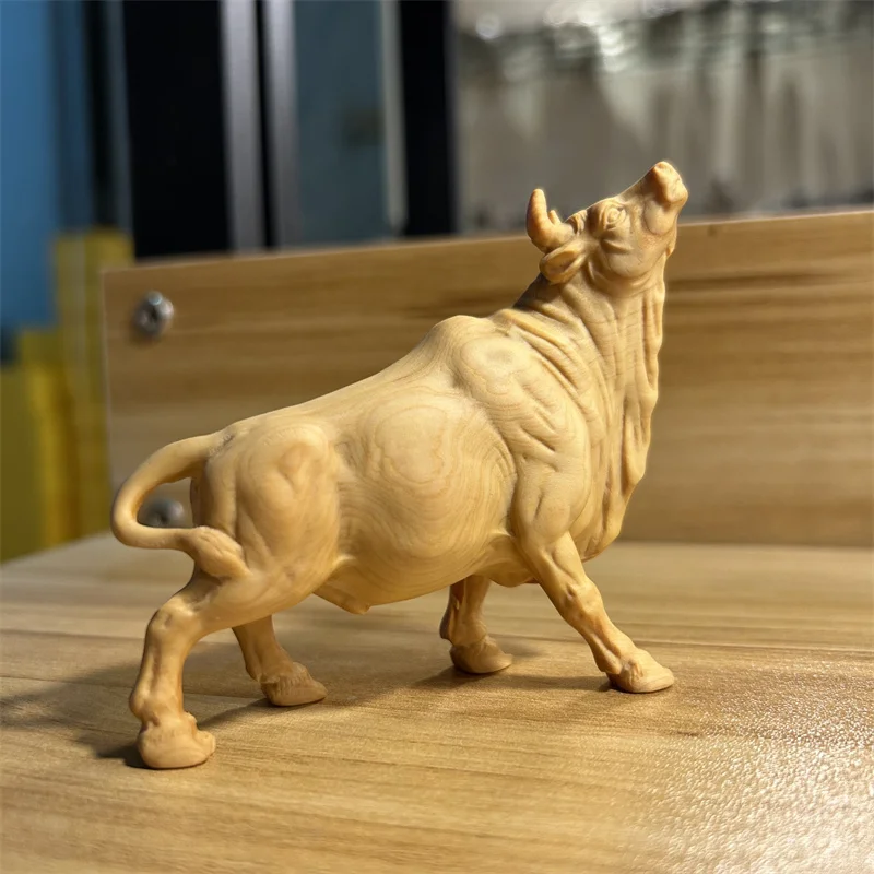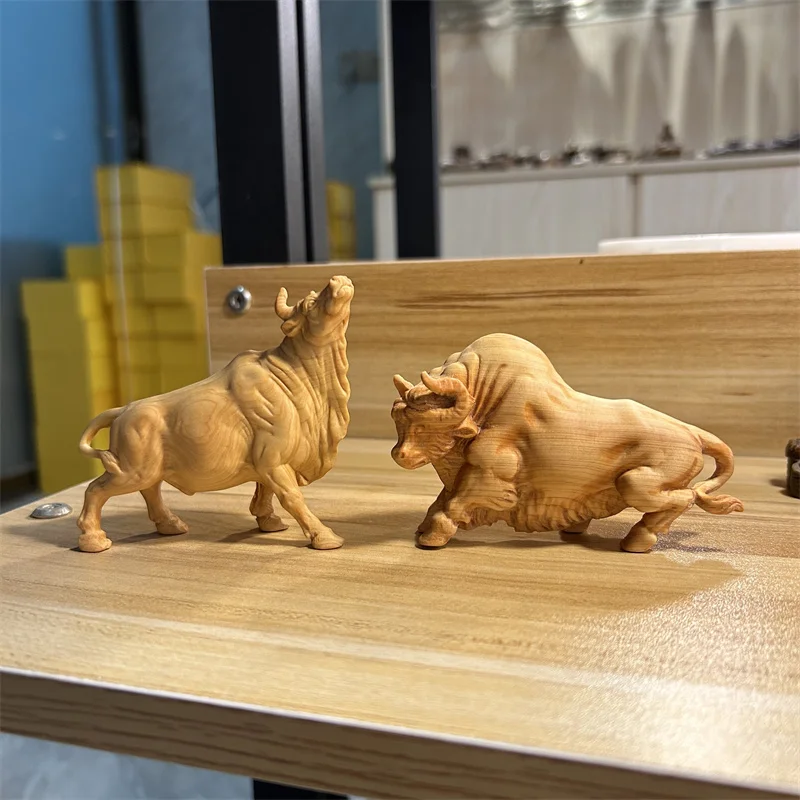Cliff cypress wood carving, zodiac zodiac zodiac animal, ox decoration, living room company office desktop opening decoration