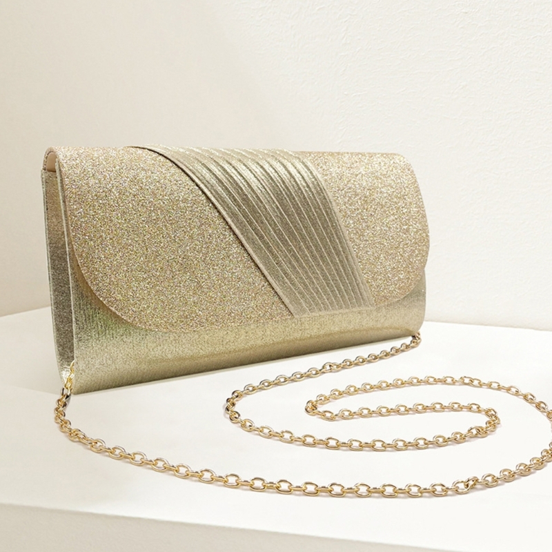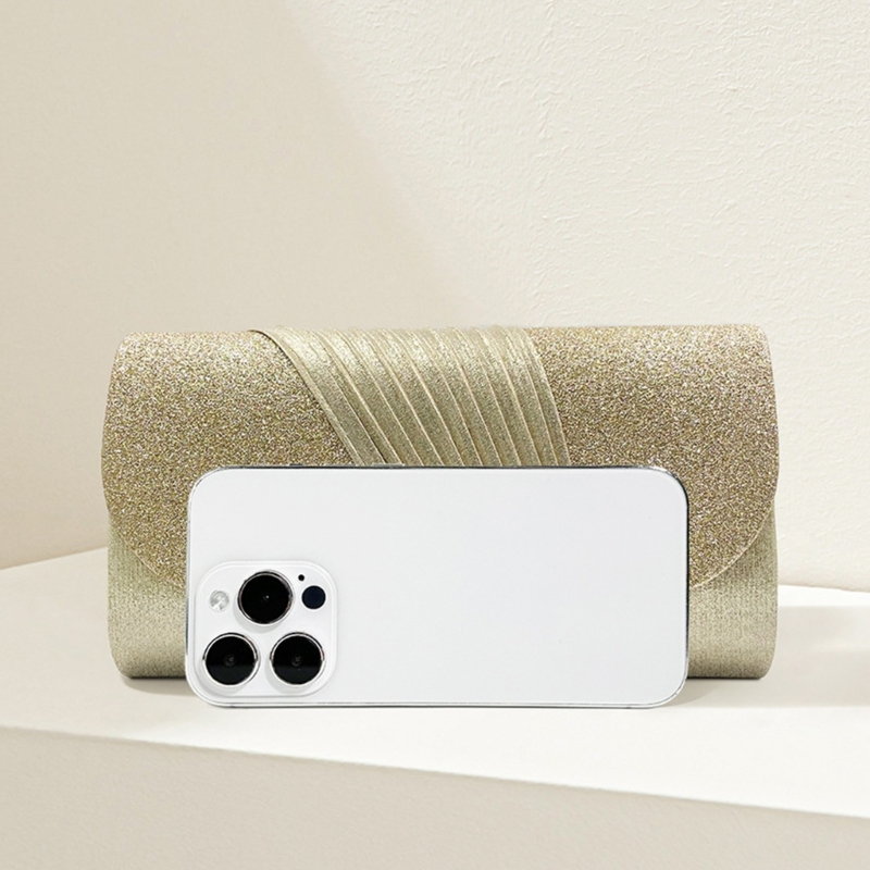 The delicate folding texture and small and dazzlings glittering fabric make the entire party clutch bag even more dazzlings, a highlight of your wedding, banquet or parties.