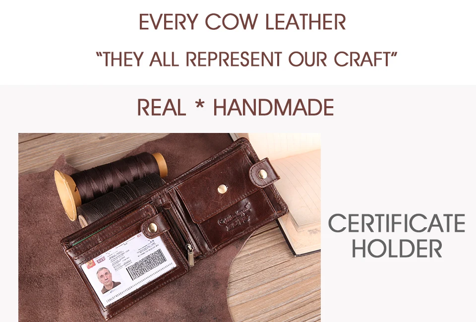 This is a 100% cow leather wallet. If you receive a scratch on your wallet, this is a normal phenomenon. It is the scratch of real leather that makes the only wallet. You can wipe it up and restore it..