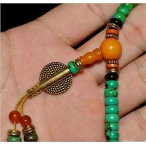 Collection Chinese Carved Tibetan Turquoise Buddhist Buddha Worry Prayer Bead Mala Necklace Exquisite Small Gift