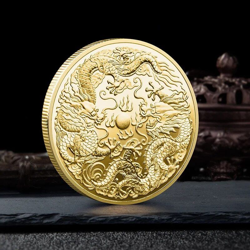 Commemorative Coin Double Dragon Nafu Gold Silver Bronze Chinese Classical Badge