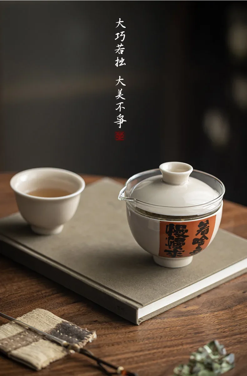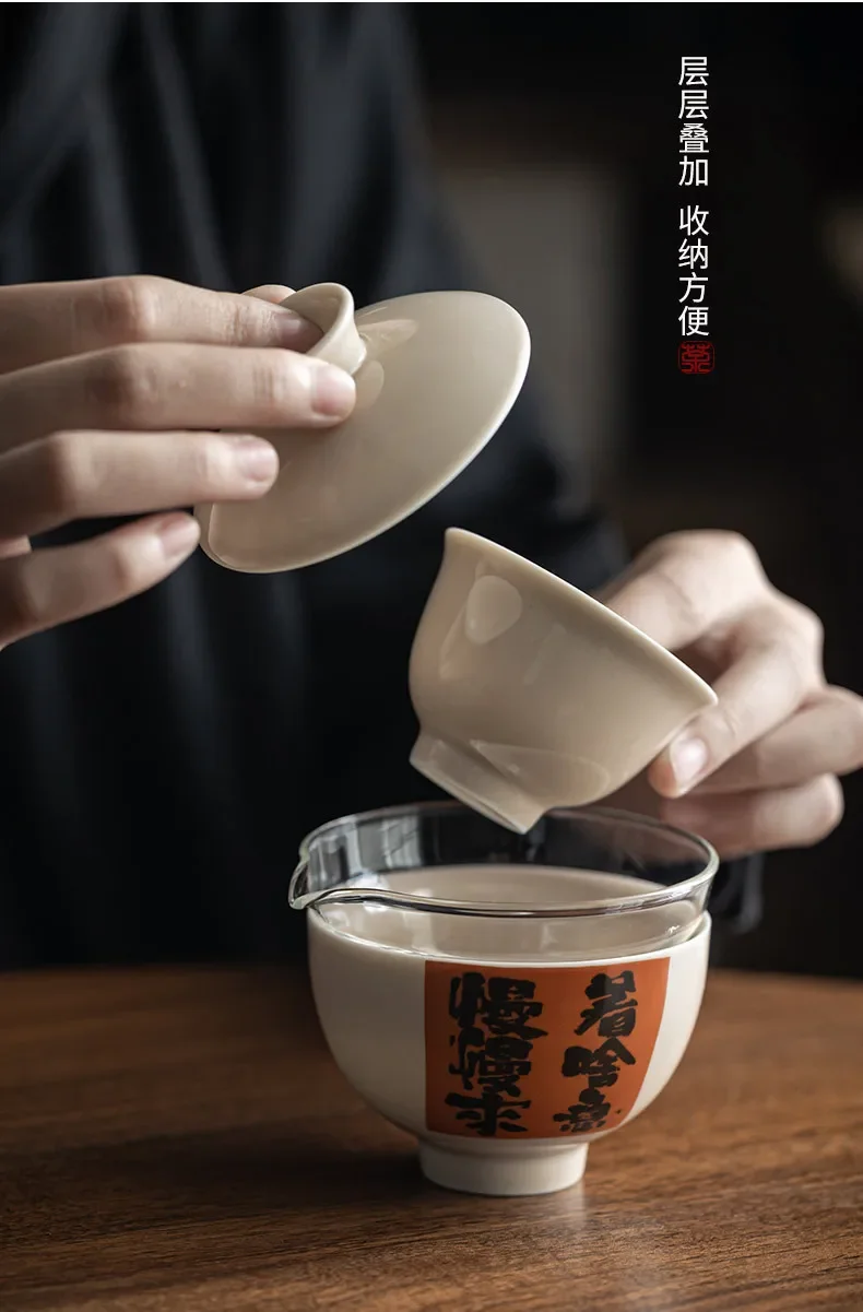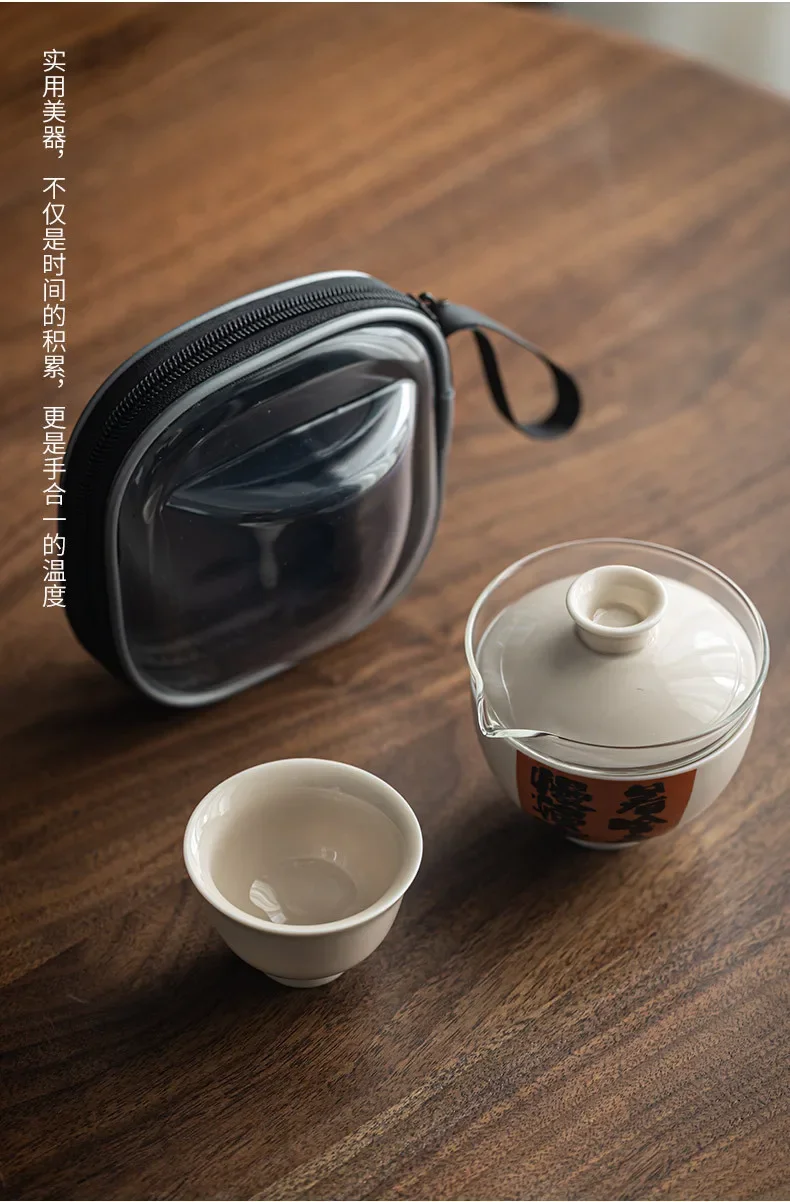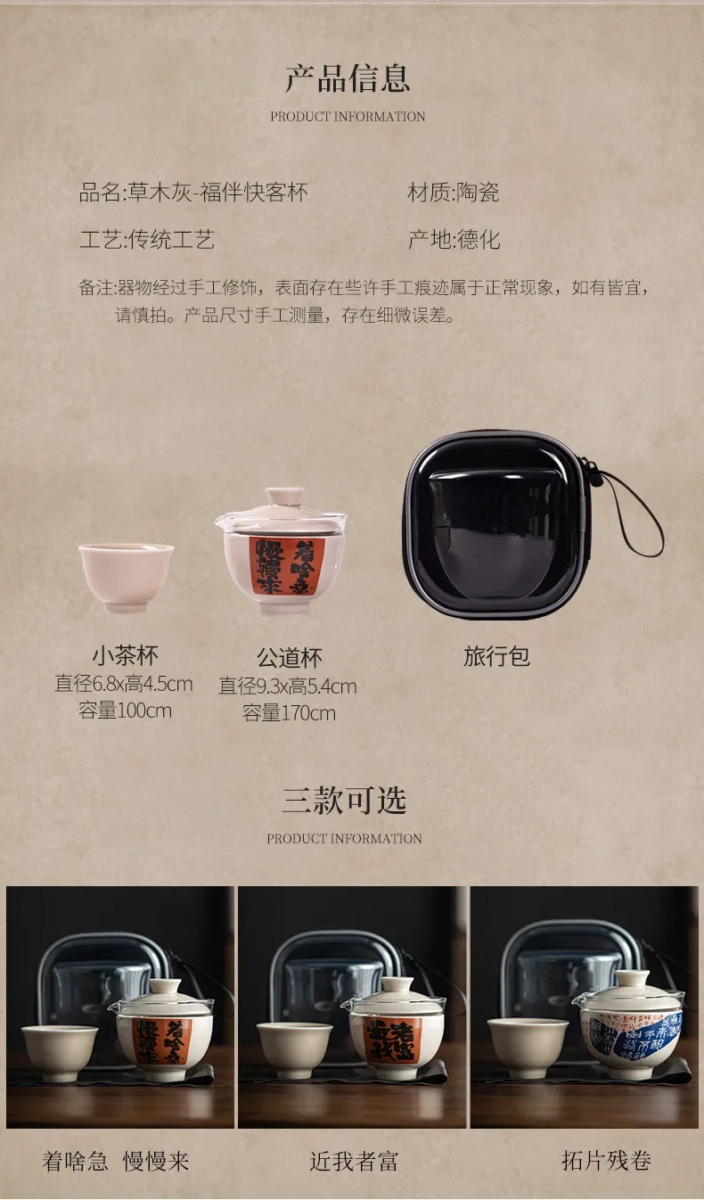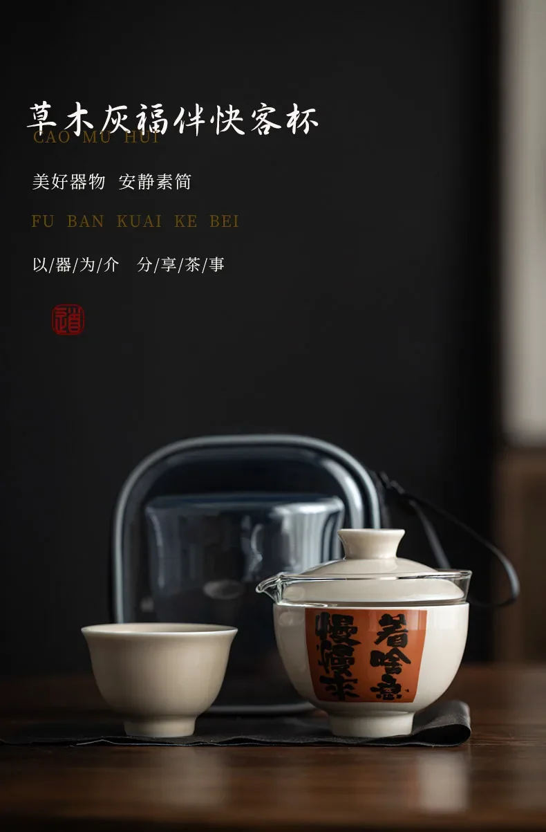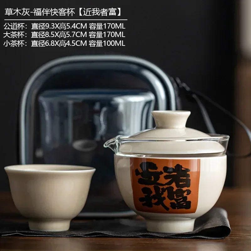 Convenient Ceramic Quick Cup Tea Set, Travel Suit, Grass Ash, One Pot, 2 Cups Storage, Justice Cup, Travel Bag, Glasses Cup