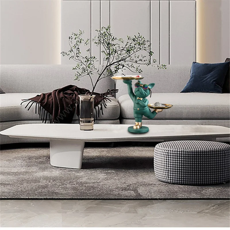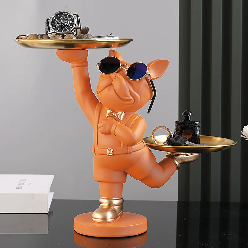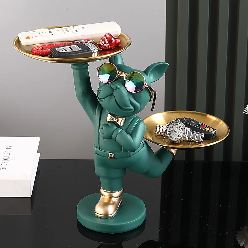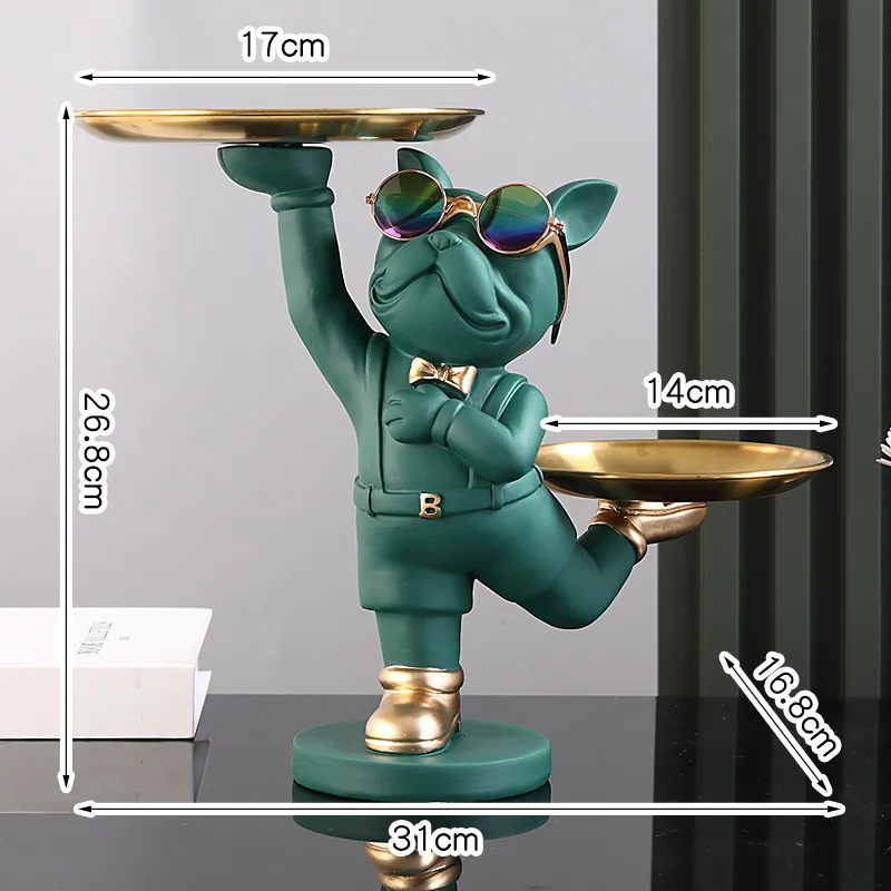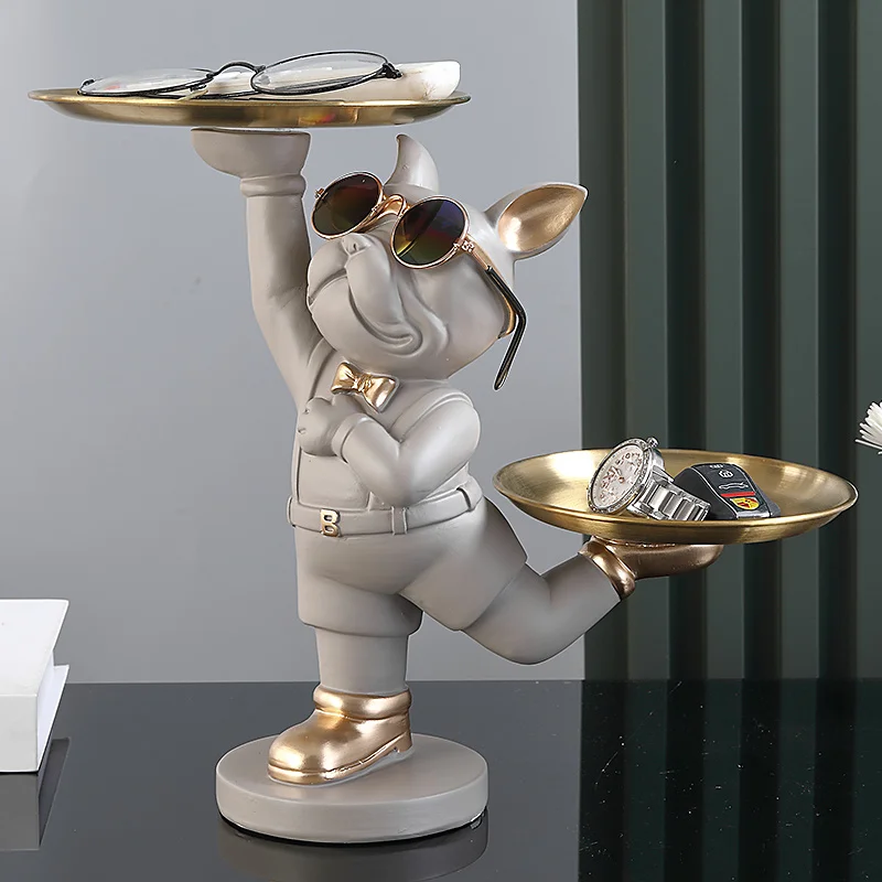 Cool French Bulldog Statue with Double Tray Resin Dog Sculpture Home Decor Animal Figurines for Home Room Table Decoration Gifts