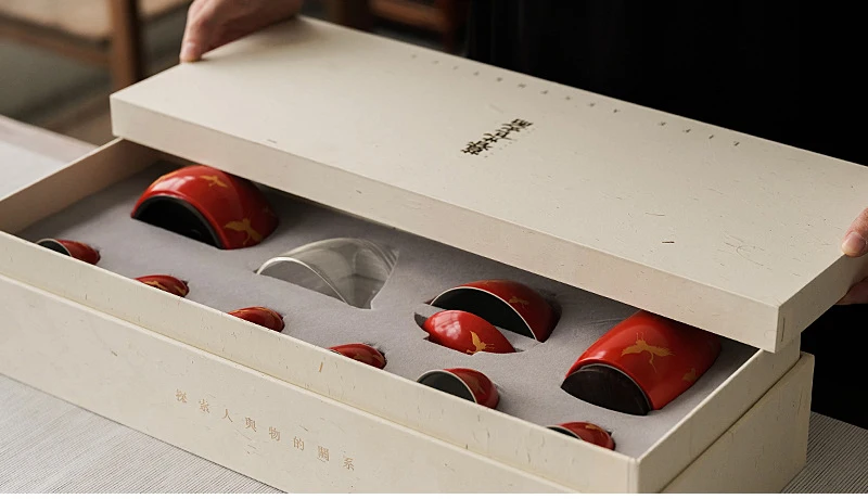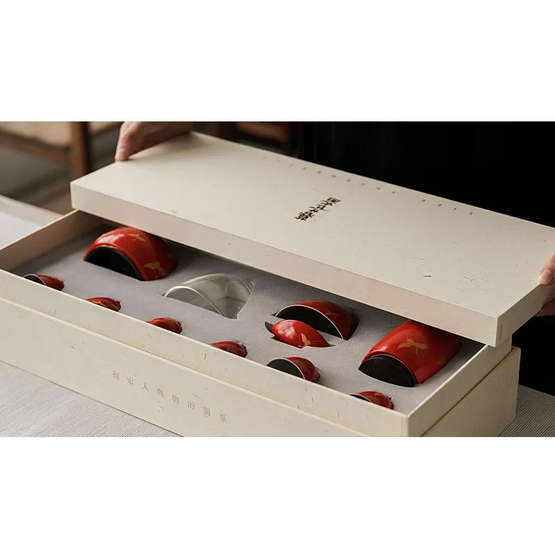 coral red tureen of a complete set of tea cups of a complete set of tea set household gift boxes set of red glaze
